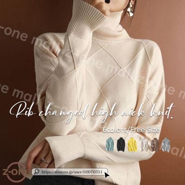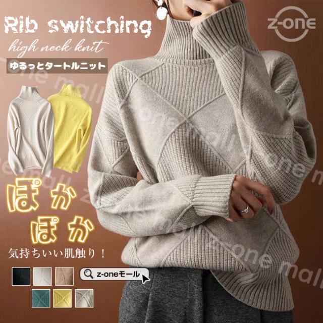 ニットセーター トップス 春ニット 冬新作 送料無料 リブトップス ハイネックニット タートルネック レディース あったか 暖かい リブ切り替え 体型カバー ドロップショルダー 菱形 ケーブル編み 厚手 福袋 バレンタインデー