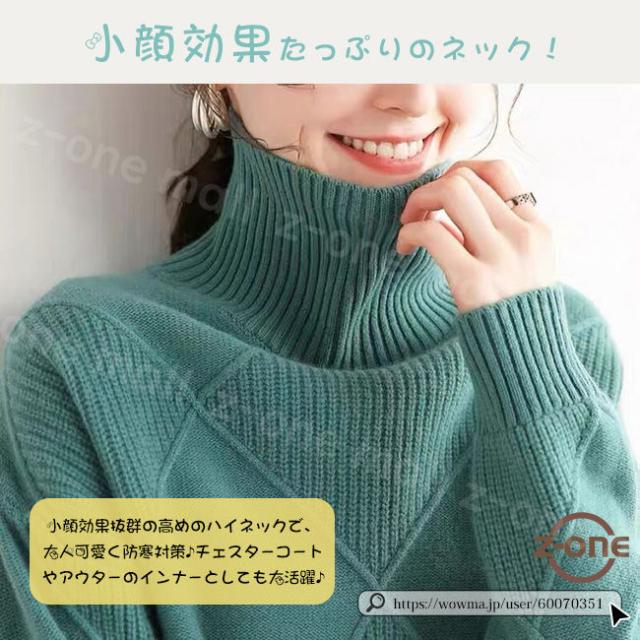絶妙ドロップショルダー&小顔効果抜群なハイネックデザインが可愛い着痩せニット♪