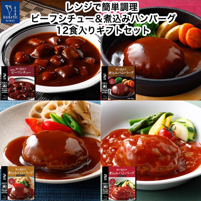 レトルト食品 詰め合わせ ビーフ シチュー ハンバーグ 4種12食入 ギフト レトルト おかず 惣菜 神戸開花亭 送料無料 お歳暮 お中元 内祝い お年賀 2026 出産 快気祝い 福袋 高級 温めるだけ レンジ対応 湯煎 福袋 ポイント消化