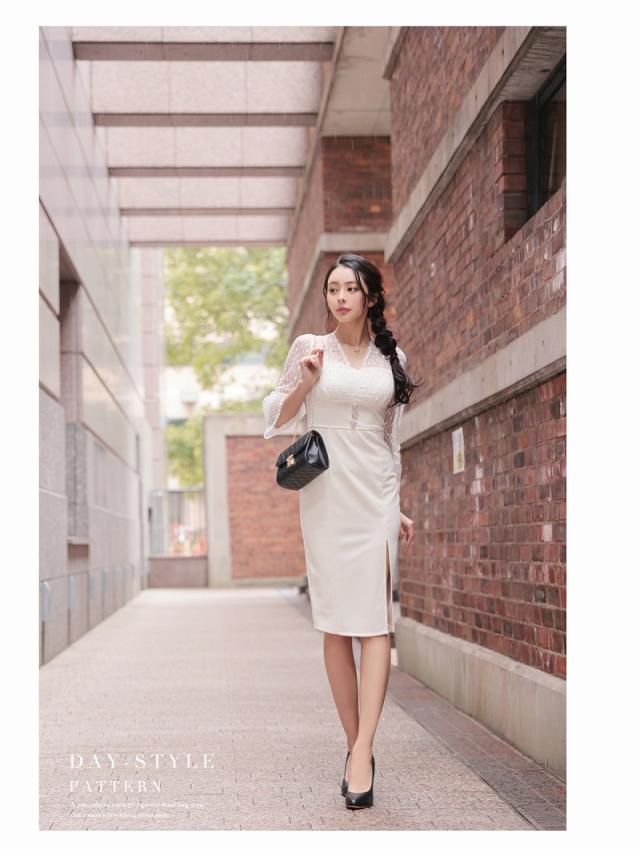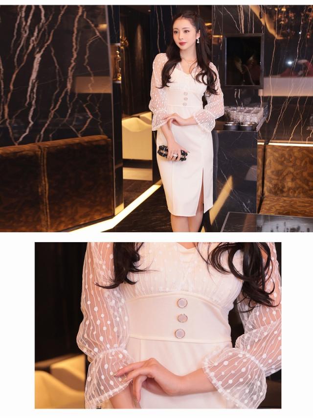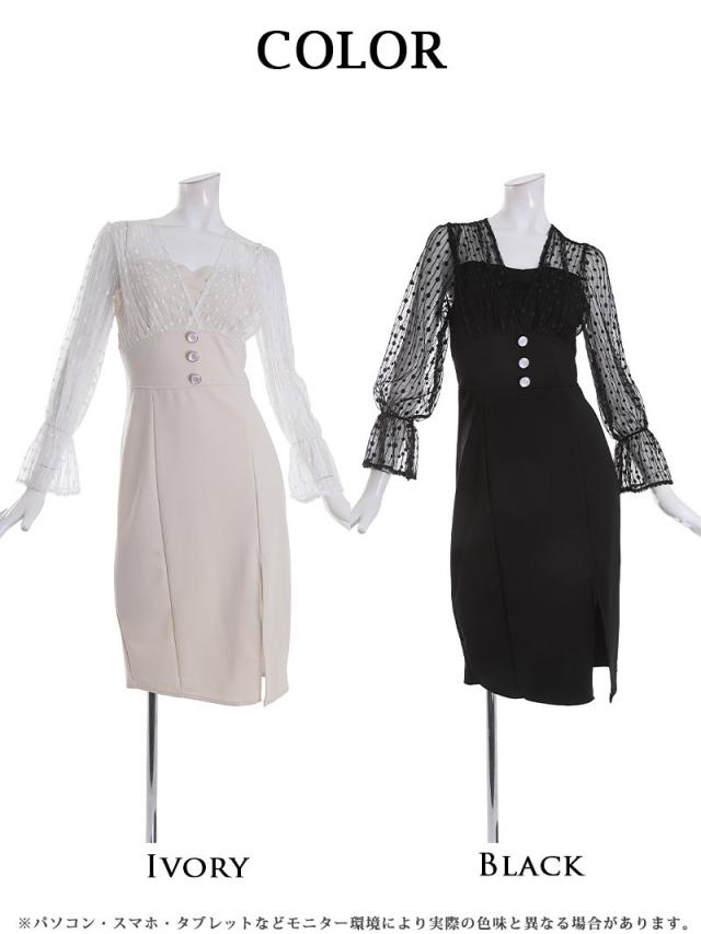 ☆ドットレースからの透け感がクラシカルな大人の色気漂う韓国キャバドレスです♪