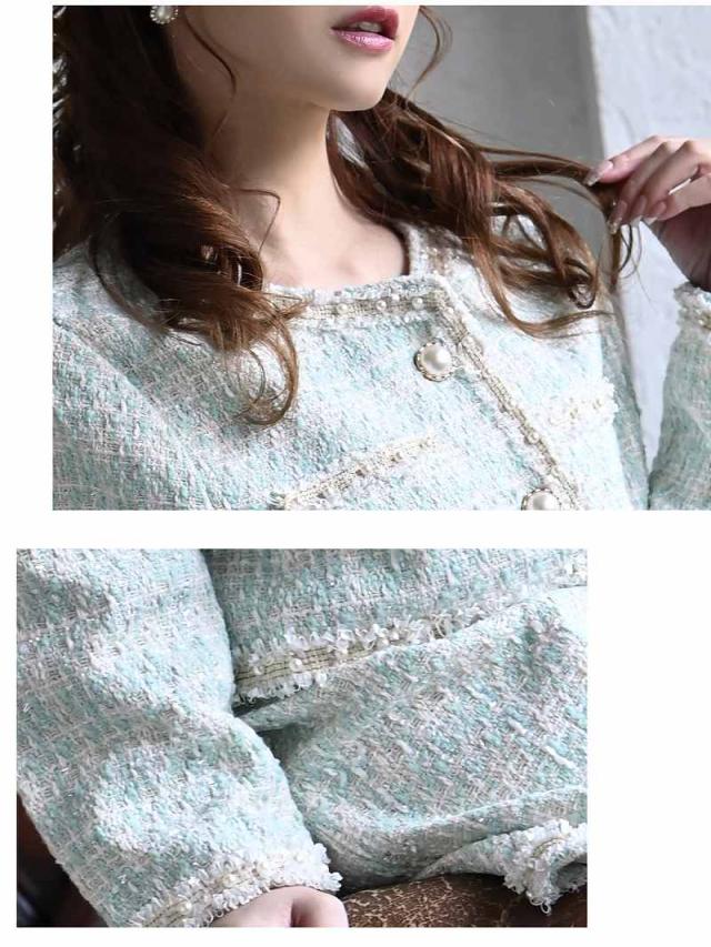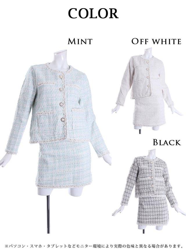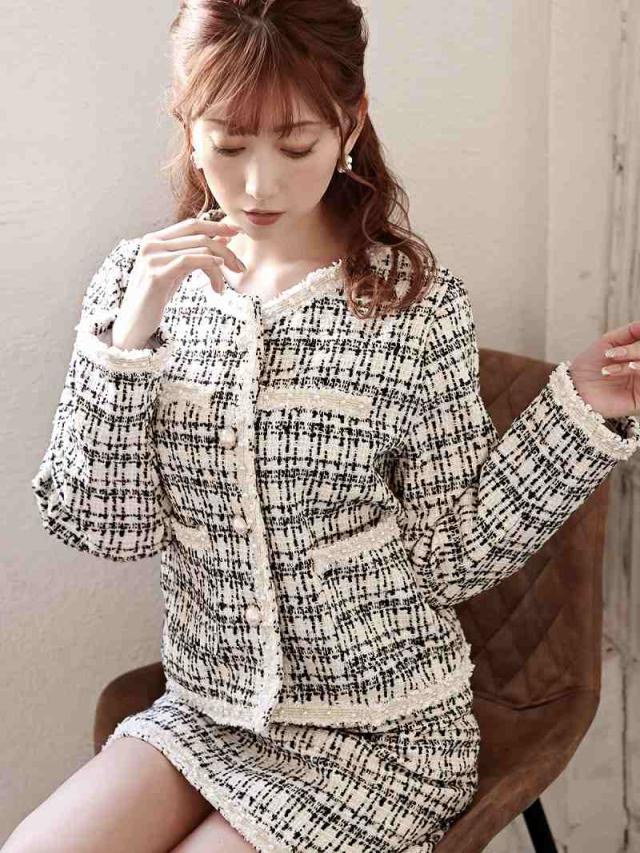 ☆温かみを感じるツイード素材のキャバスーツはパールボタンやハイピングデザインなどを施したクラシカルな雰囲気できれいめに着こなしていただけるのでキャバクラやラウンジでのお仕事スーツとしてはもちろん同伴で着用するのもおすすめです♪