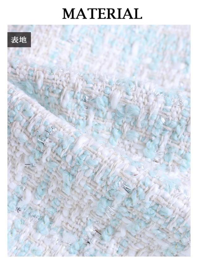 ☆上品なツイードに淡いカラーをONすることで可愛さをプラスすることができる大人可愛いツイードスーツです♪