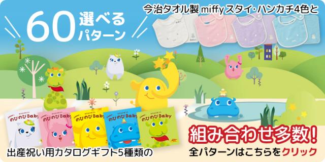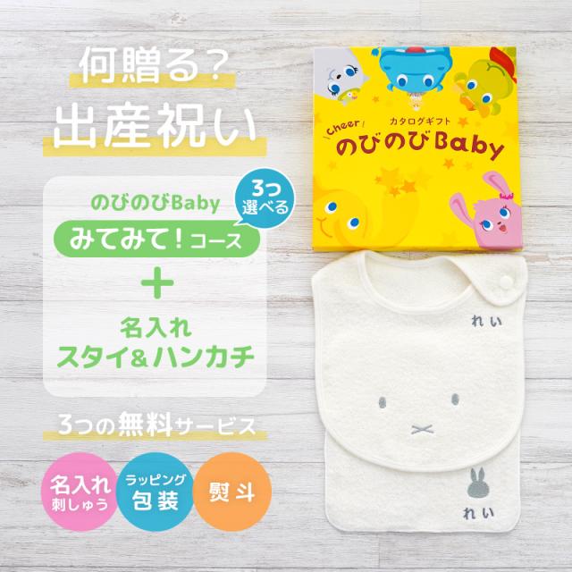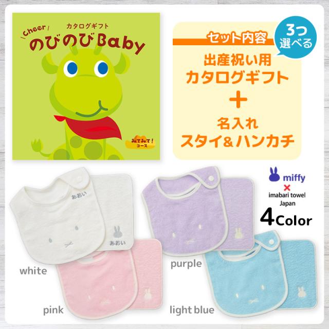 出産祝い カタログギフト のびのびBaby 3つ選べる みてみて!コース & 今治タオル 名入れミッフィースタイ・ハンカチセット 男の子/女の子/ビブ/赤ちゃん/ママ友達に贈りたい人気カタログギフト/プレゼント/よだれかけ/育児グッズ/miffy/ビブ