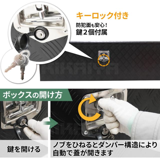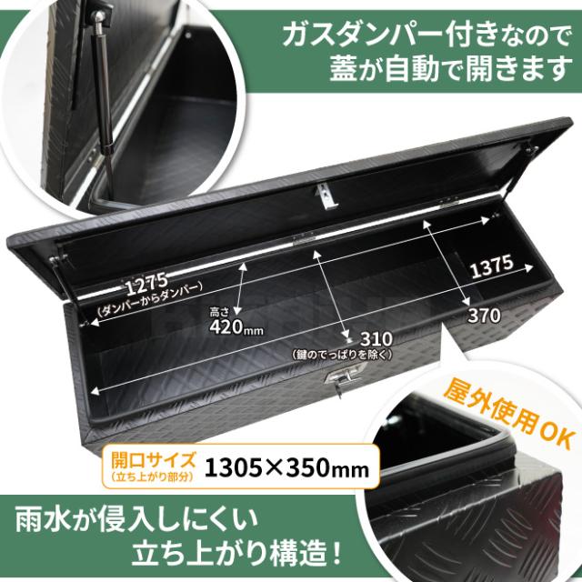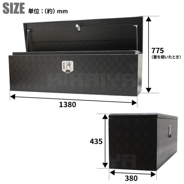 アルミトラックボックス 1380×380×435mm ブラック 軽トラ 荷台 ボックス 黒 艶なし マットタイプ アルミボックス KIKAIYA
