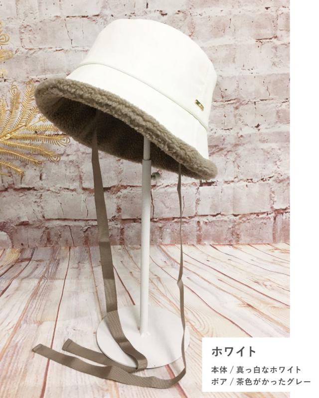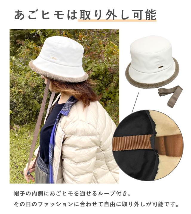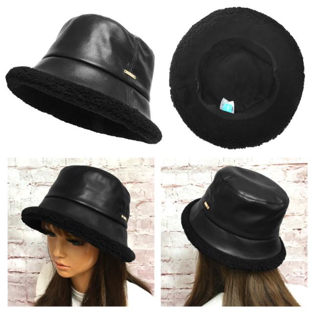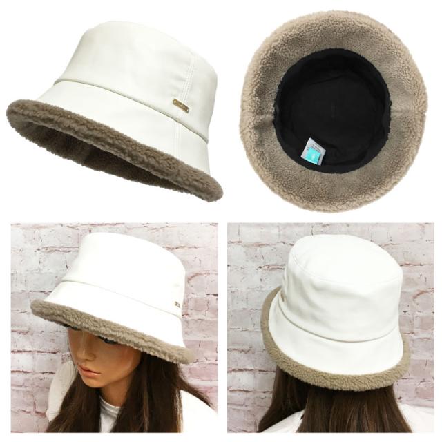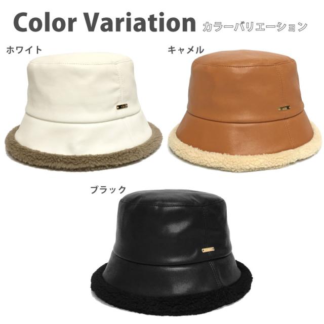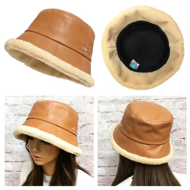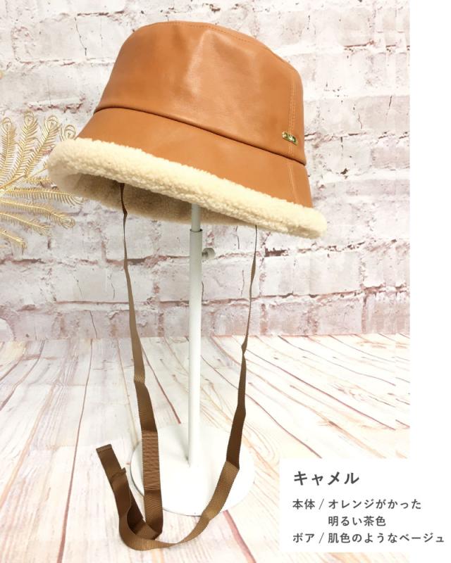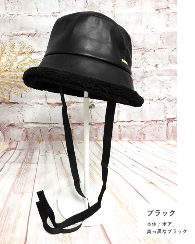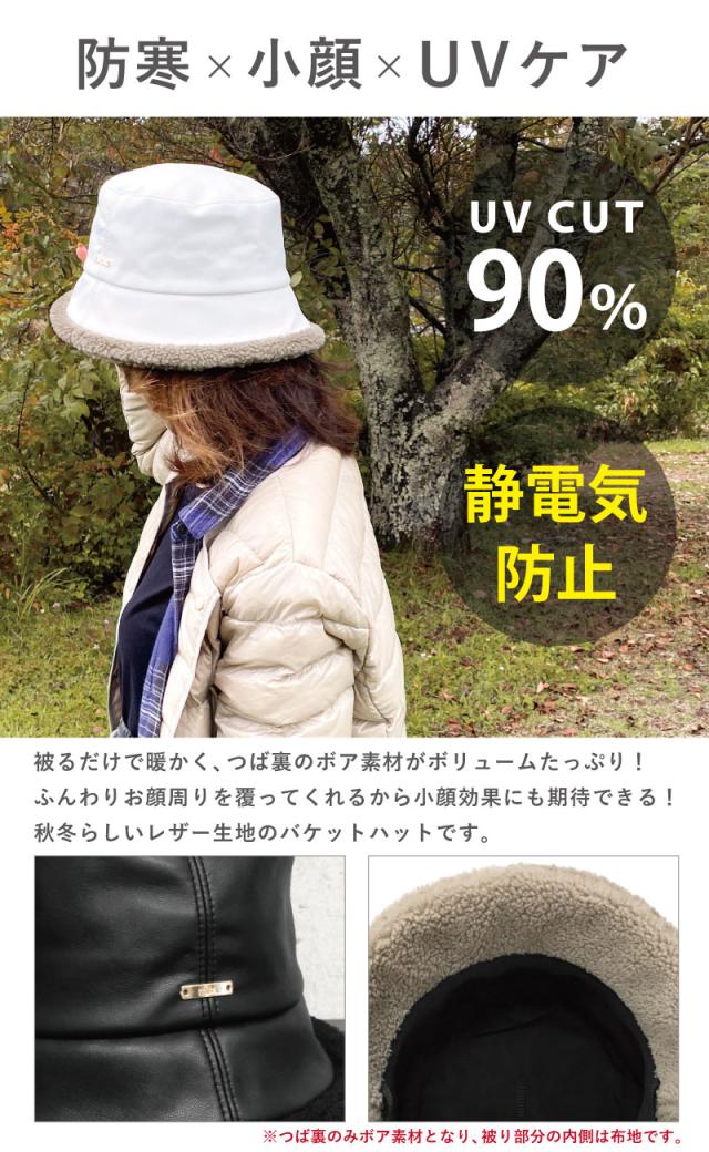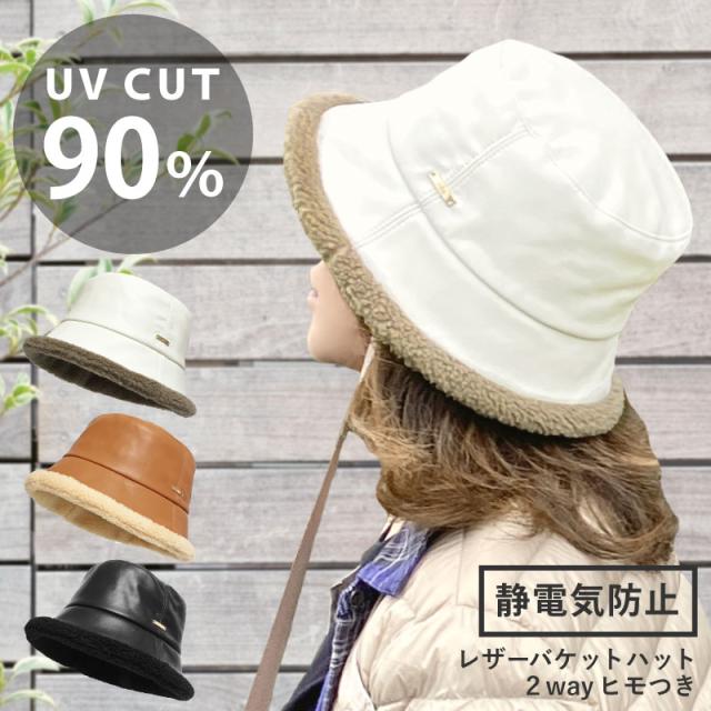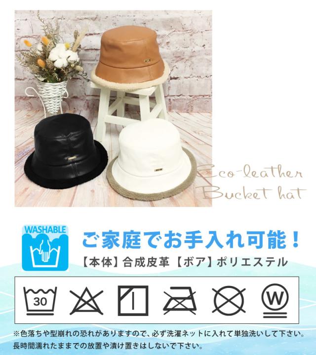 レザーバケットハット 帽子 洗濯機で洗える UV90%カット メール便は送料無料 つば裏ボア 静電気防止 秋冬 レディース 折り畳み ヒモつき 57.5cm 無地 hat-1465 暖かい アウトドア 帽子 洗える エコレザー エコファー フェイクムートン 防寒 お洒落