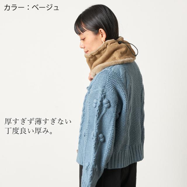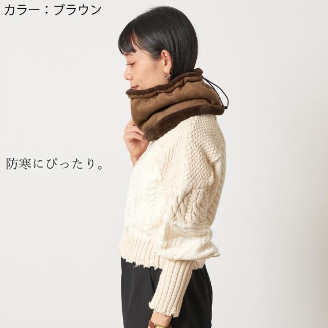 表地はムートン素材を使用し、内側は肌触りのよいファーを使用したネックウォーマー。