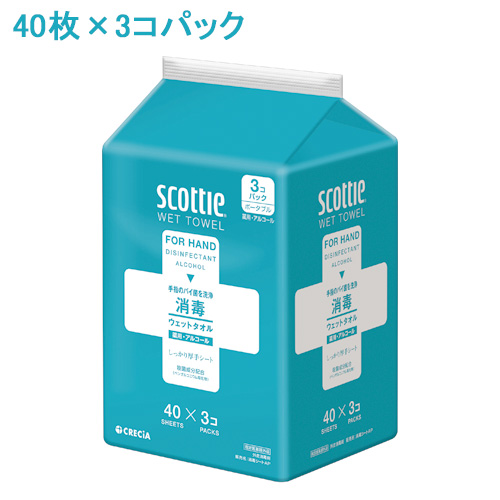 スコッティ ウェットタオル 消毒アルコールタイプ 40枚×3コパック ウエットティッシュ scottie 日本製紙クレシア(Crecia)