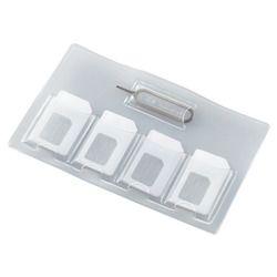 ■SIMカード/miniSIMカード/nanoSIMカードを合計4枚収納できるSIMカードケースです。 ■使用していないSIMカードをまとめて収納・管理するのに便利です。 ■カードサイズで財布のポケットにも収納可能です。 ■小さなnanoSIMカードも、専用のnanoSIM収納アダプターを使用することできっちり収納できます。 ■SIMカードの入れ替えに使用するSIMトレイ開閉ピンが付属しています。 ■柔軟性のあるPVC素材を使用し、カードの取り出しも簡単にできます。