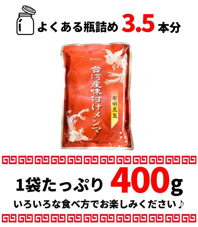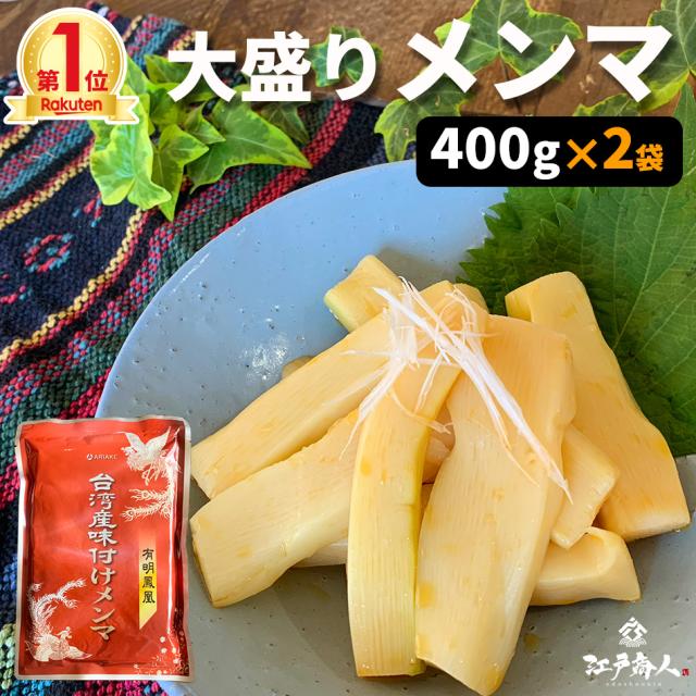メンマ 台湾産味付けメンマ 400g ×2袋 送料無料 お試し 業務用 おつまみ お取り寄せ 晩酌 珍味 ラー油 筍 太い めんま 肉厚 柔らか シャキシャキ 漬物 ラーメンに チャーハンに ご飯のお供 酒のつまみ アリアケジャパン お中元