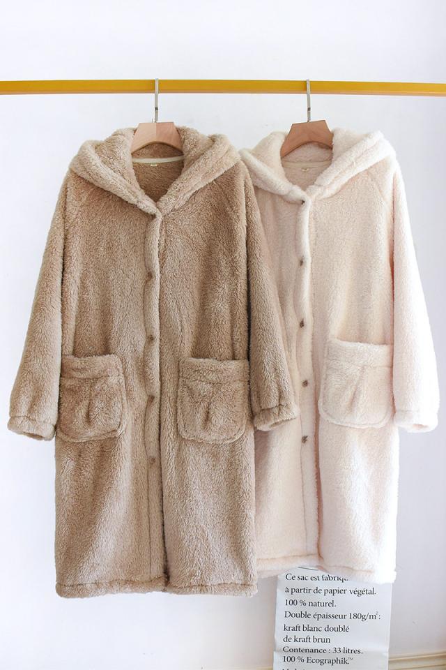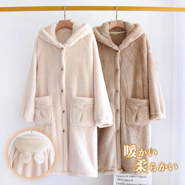 パジャマ ルームウェア バスローブ カーディガン カップル フランネル 防寒 ロング丈 冬 部屋着 寝巻き コート ふわふわ モコ
