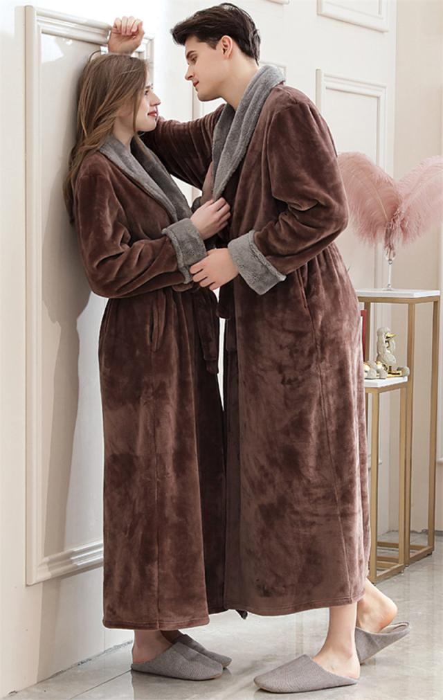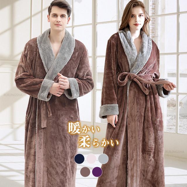 パジャマ ルームウェア カーディガン バスローブ カップル フランネル 防寒 ロング丈 冬 前開け 部屋着コート ふわふわ モコモ