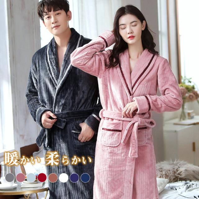 パジャマ ルームウェア バスローブ 寝巻き カップル フランネル 防寒 ロング丈 冬 前開け 部屋着 コート ふわふわ モコモコ