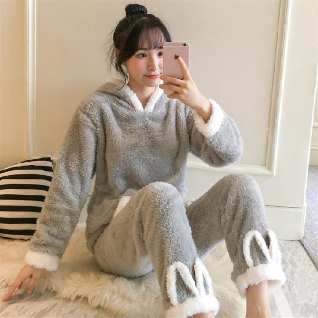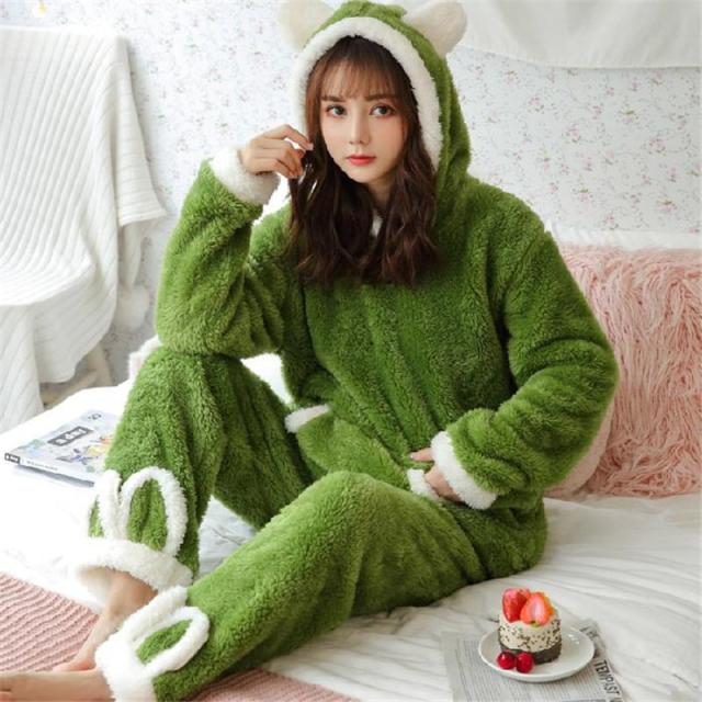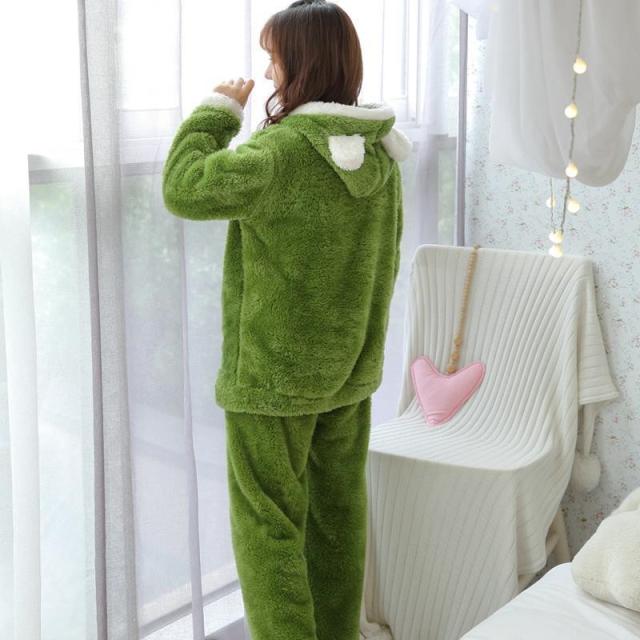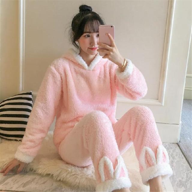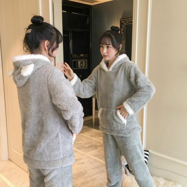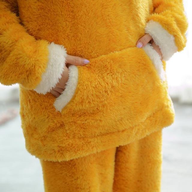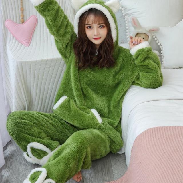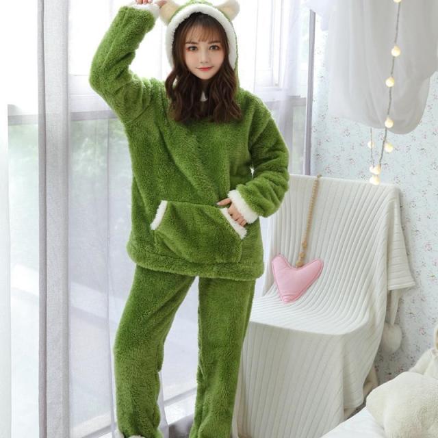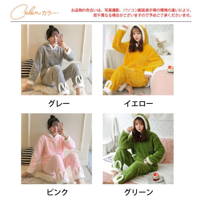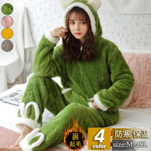 パジャマ レディース ルームウェア 上下セット 長袖 フランネル フード付き モコモコ 暖かい 厚手 寝巻き 部屋着 大きいサイズ