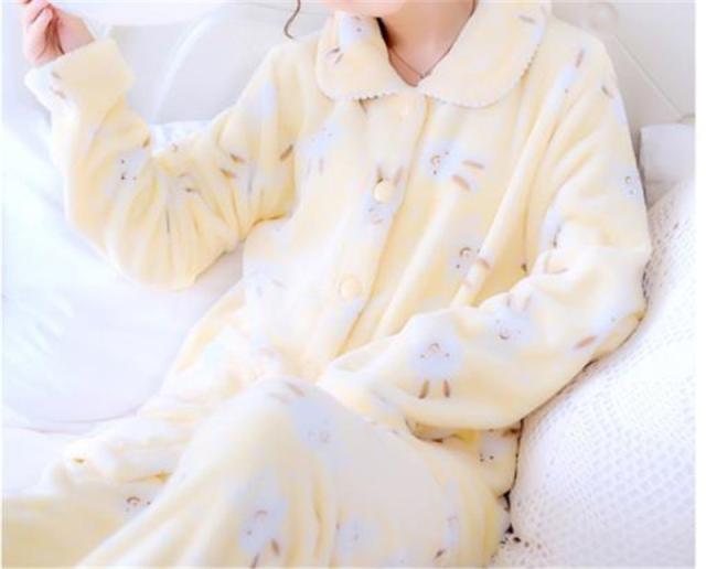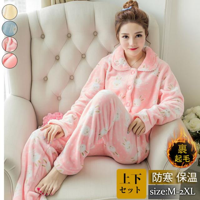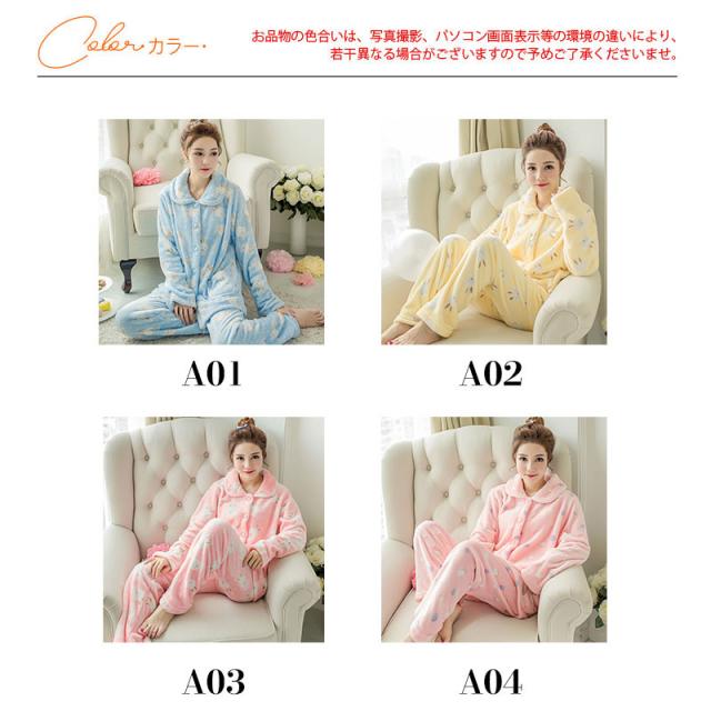 パジャマ レディース ルームウェア モコモコ 上下セット 前開き 長袖 フランネル 部屋着 寝巻き ゆったり 可愛い ふわふわ ギ