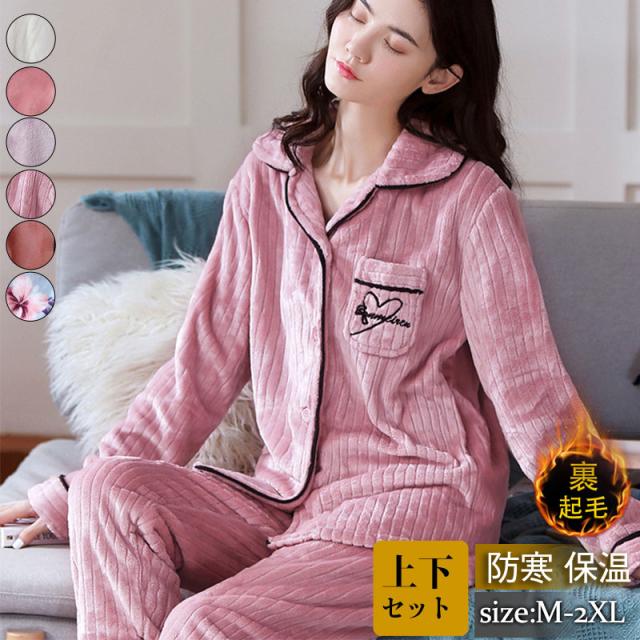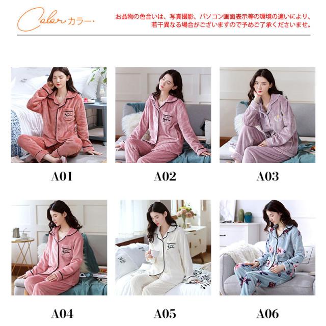 パジャマ レディース ルームウェア モコモコ 上下セット フランネル 暖かい 部屋着 寝巻き ゆったり 厚手 花柄 高級感 エレガ