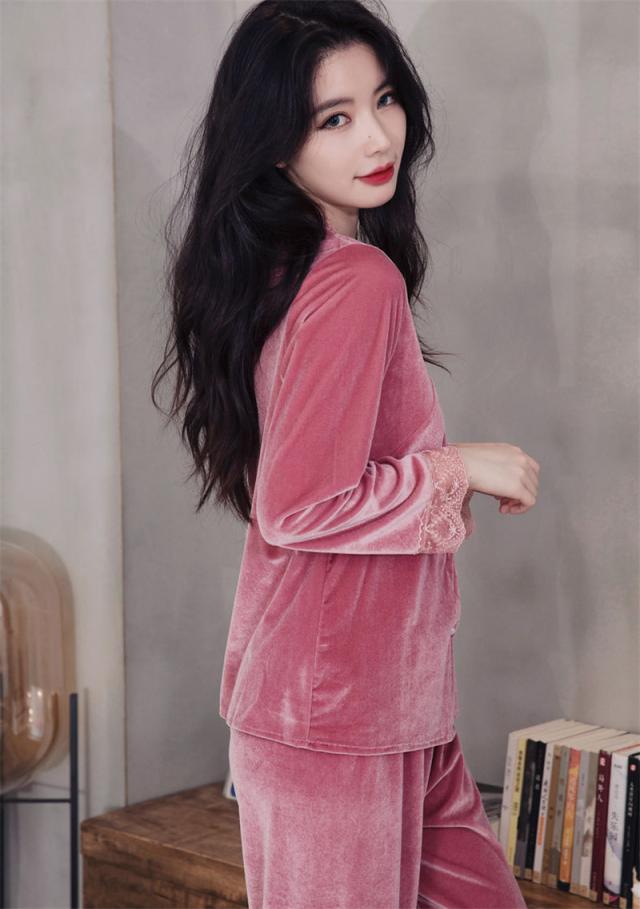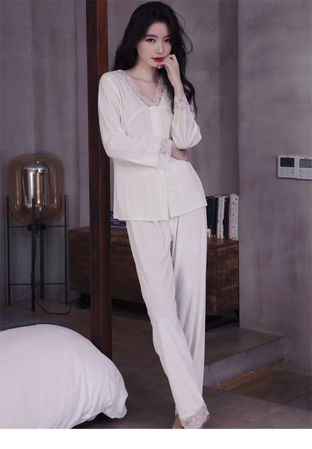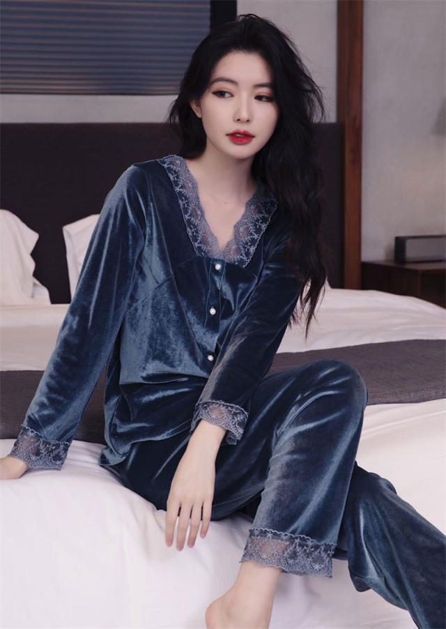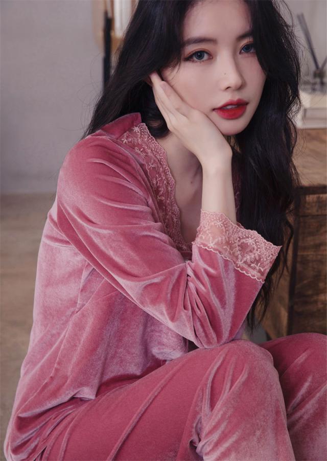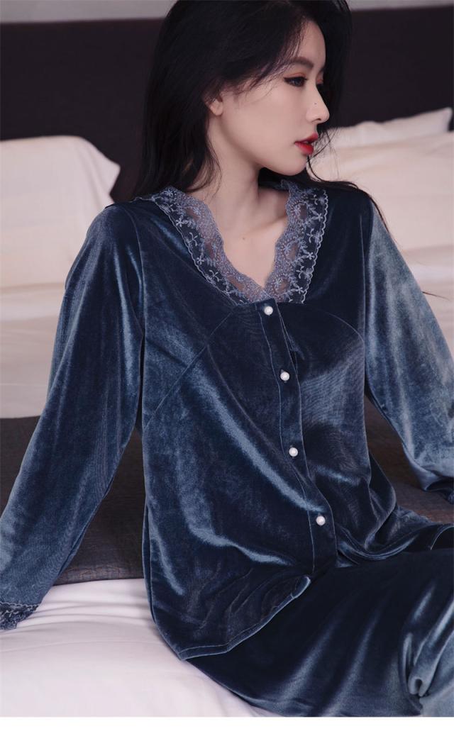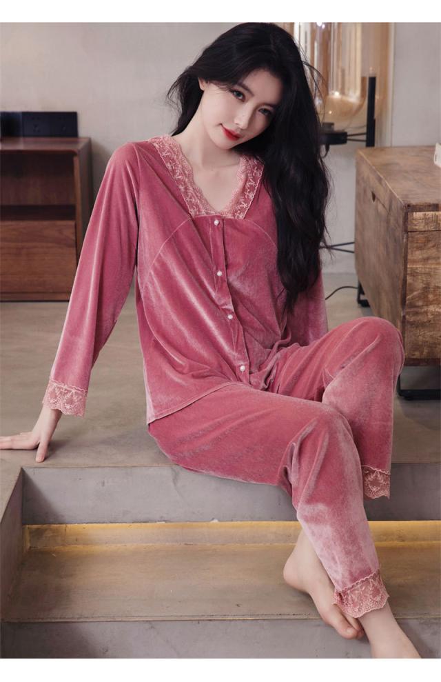 パジャマ レディース ルームウェア 上下セット 起毛 レース 寝巻き 長袖 Vネック ゆったり カジュアル 柔らか 高級感 エレガ