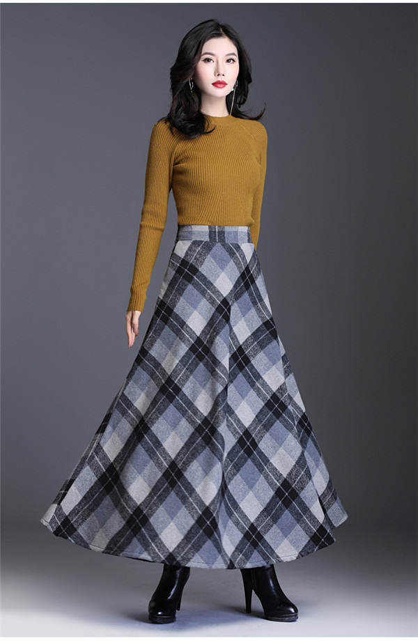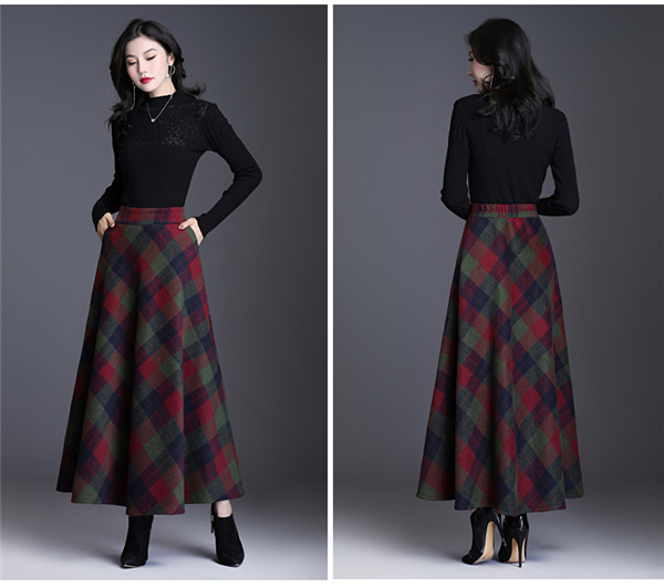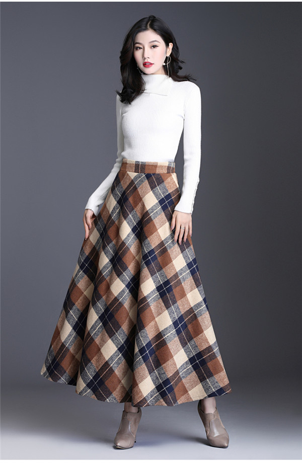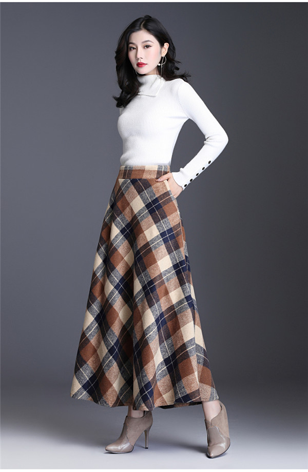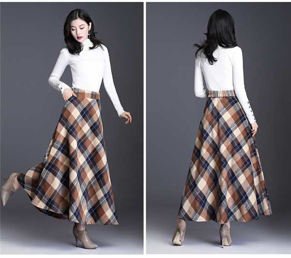 ポイント超超祭 セール中 スカート レディース 秋冬 ロングスカート チェック柄 大きいサイズ ハイウエスト 体型カバー カジュアル きれいめ 秋物 冬物 通勤 ビジネス