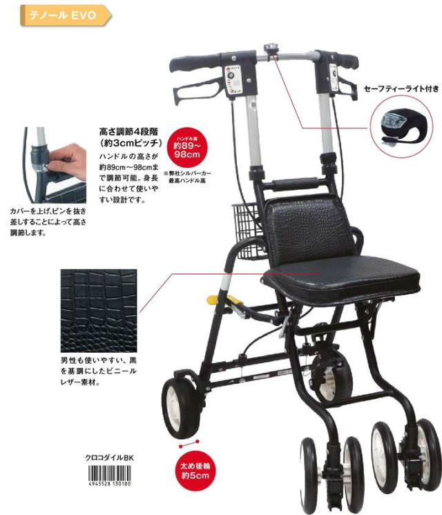 島製作所 テノールEVO クロコダイル調のおしゃれなシルバーカー 男性が使いやすいサイズ設計。U字ハンドルで歩きやすさを追求取外し可能のライト付座れる軽量コンパクト父の日長寿祝い介護 福祉 サービス高齢者デイサービスシニア運動会旅行男性に人気です!