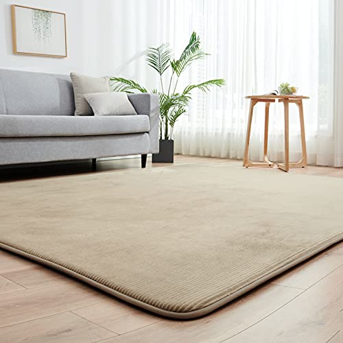 カーペット ラグ ラグマット 1.5畳 130×185cm 極厚 35mm ホット カーペット カバー 洗える 滑り止め付 じゅうたん 床暖房対応カーペット オールシーズン フランネル ベージュ aicomri