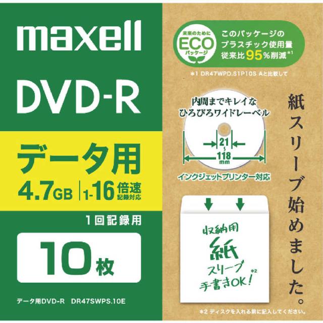マクセル データ用DVD-R 4.7GB エコパッケージ 10枚 ホワイト [10枚 /4.7GB /インクジェットプリンター対応] DR47SWPS10E