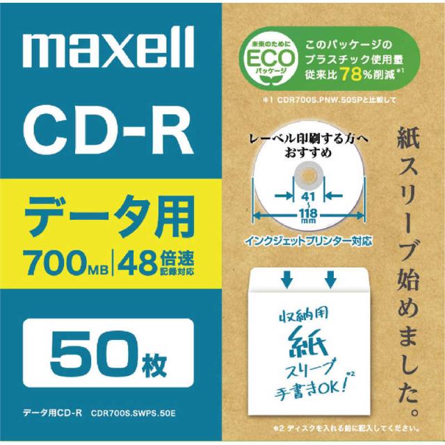 マクセル データ用CD-R 700MB エコパッケージ 50枚 ホワイト [50枚 /700MB /インクジェットプリンター対応] CDR700SSWPS50E