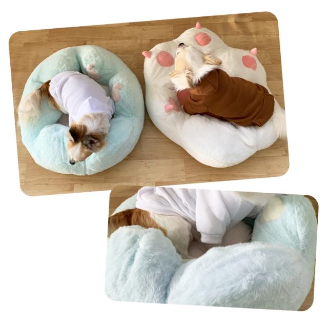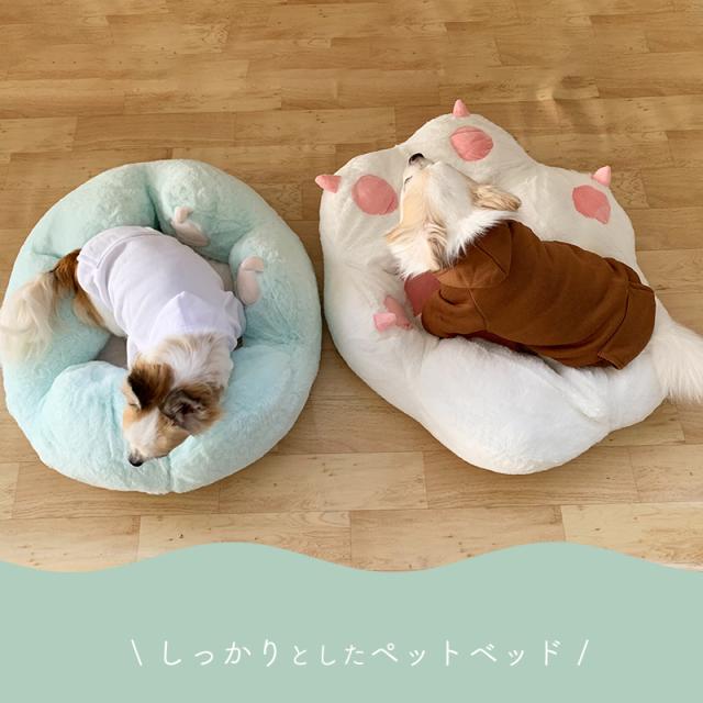 肉球デザインのふわふわベッド。