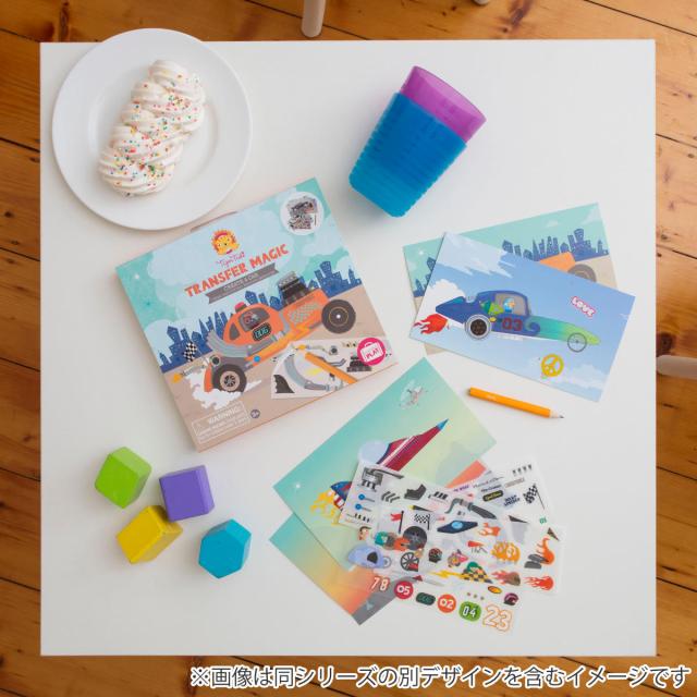 転写シールをエンピツでこすって貼り付け、素敵な作品を作りましょう。転写シールは普通のシールとは違い、イラストの部分だけをこすって転写することができるシールです。シールには白い枠がないので、まるで最初から一枚のイラストのように仕上げられます。一枚一枚丁寧に、時間をかけて遊べます。お子さまの指先と想像力が鍛えられます。