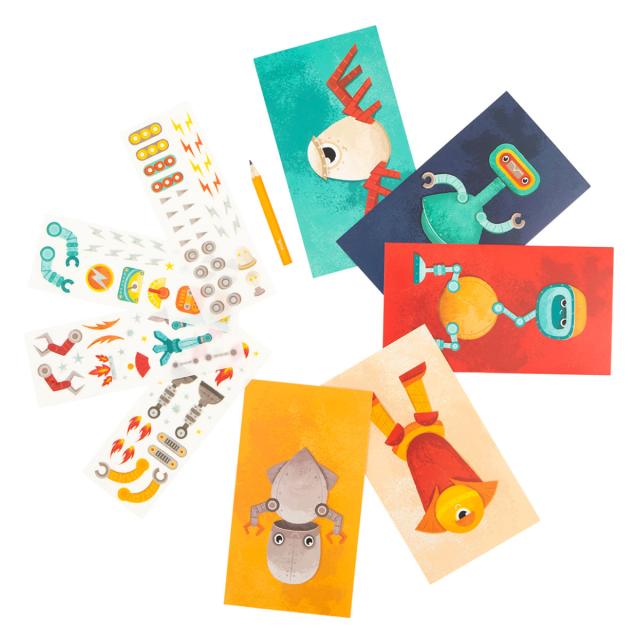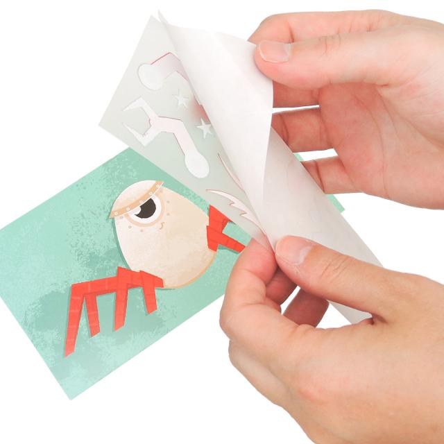コミカルで面白いロボットがたくさん描かれた台紙に、似合う腕やパーツを選んで転写シールを貼ってあげましょう。しっかりとした台紙なので、出来上がったあとお部屋に飾るのも素敵です。