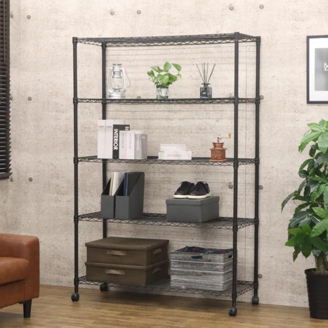 スチールラック 5段 ヴィンテージ調 NERO 幅120cm ( ラック 収納棚 シェルフ スチール リビング収納 収納 収納ラック 飾り棚 棚 ディスプレイラック ブラック スチール製 キャスター付 )