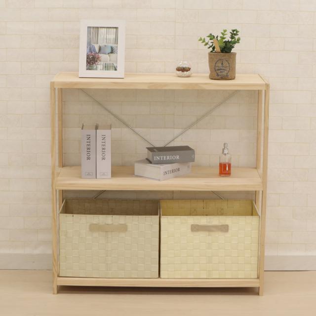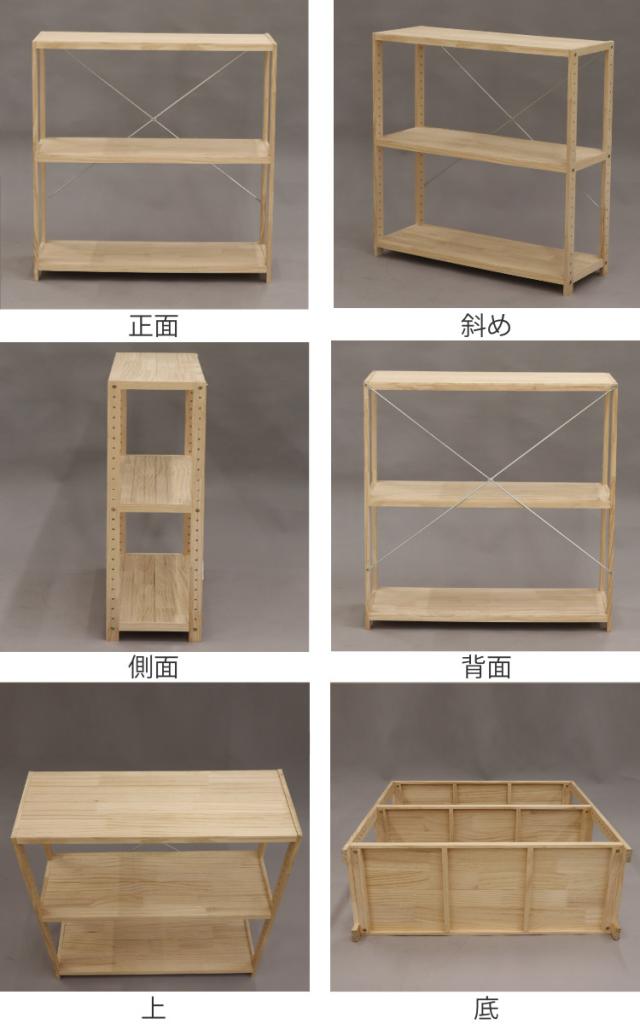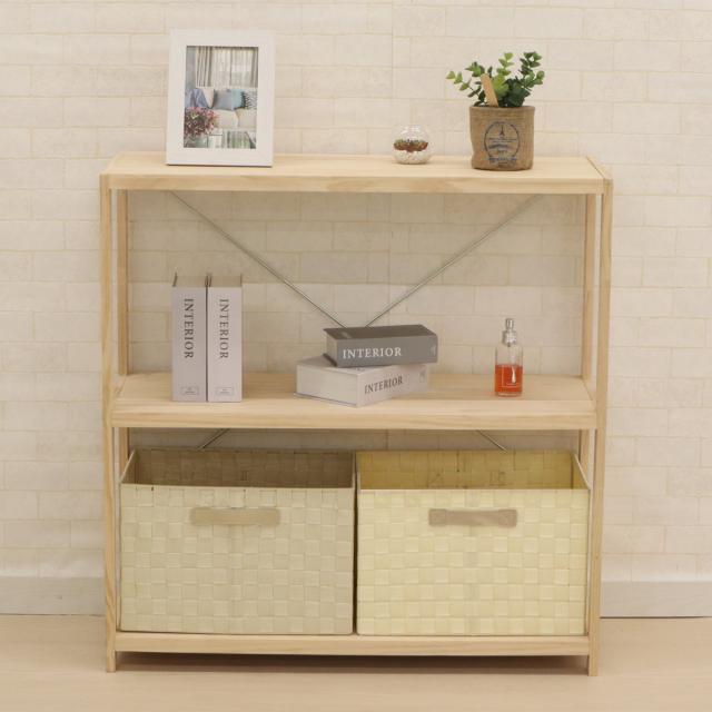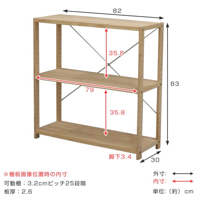 天然木を使用したシンプルな3段収納ラック 幅82cm