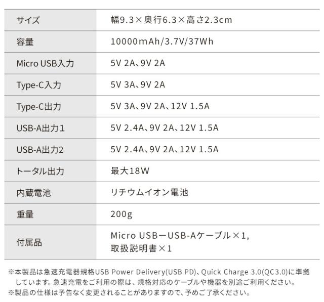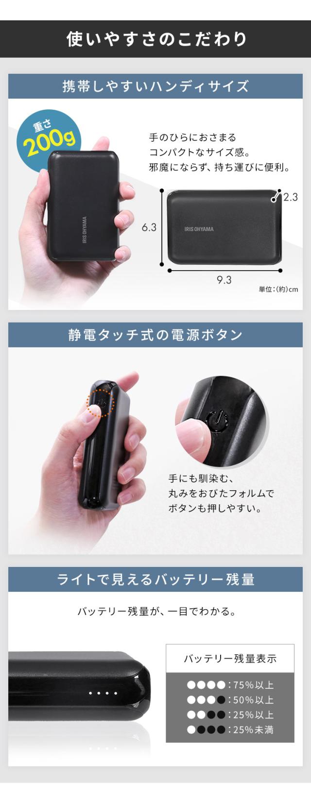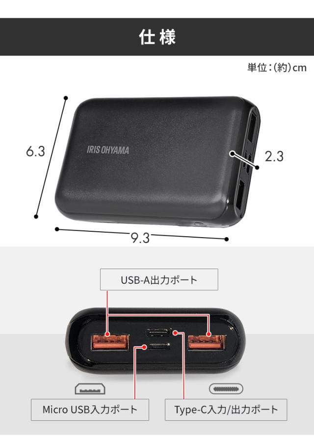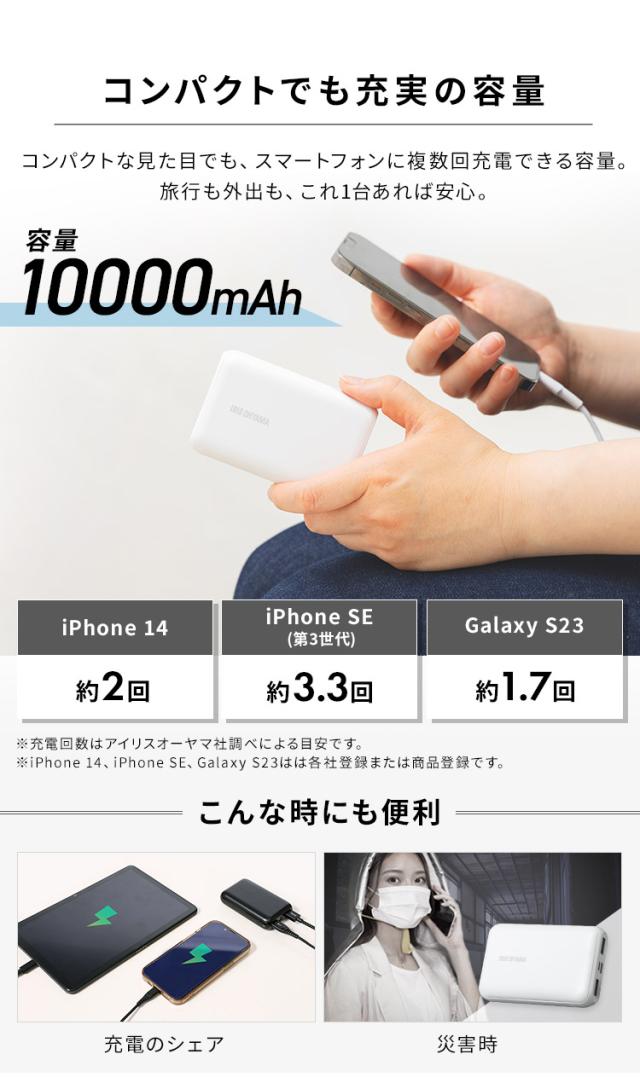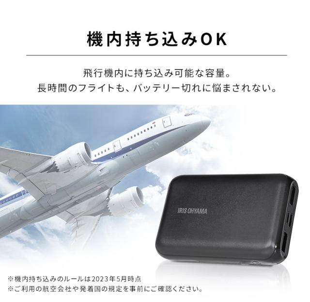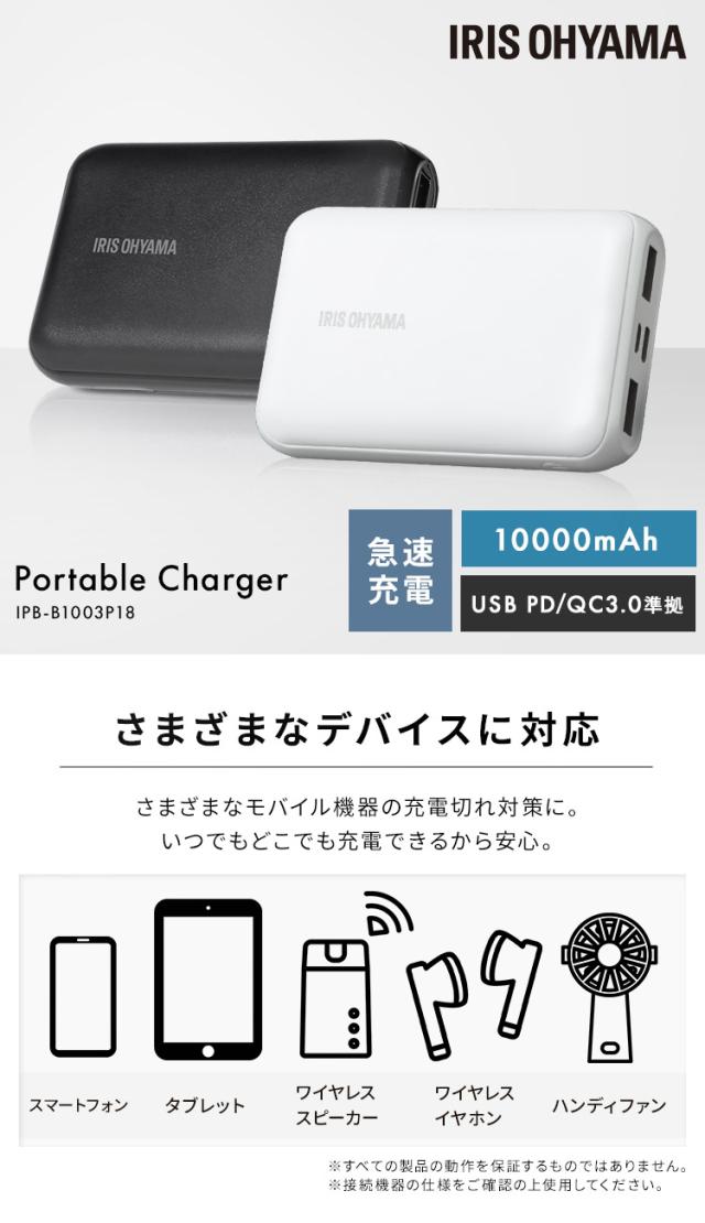 モバイルバッテリー 黒 IPB-B1003P18-B バッテリー 10000mAh 18W 充電器 モバイルバッテリー スマホ タブレット 同時充電 急速充電 チャージャー アイリスオーヤマ