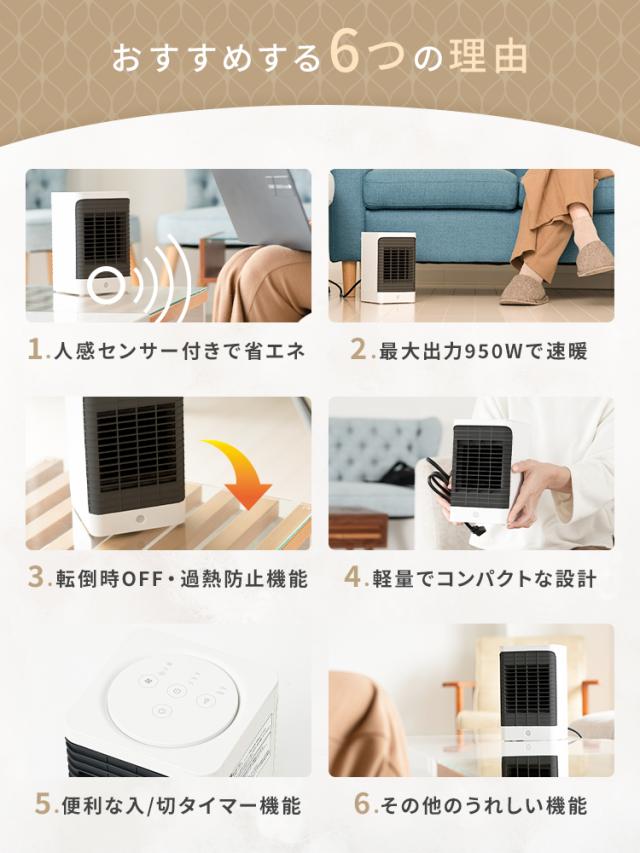 ヒーター 小型 ヒーター 足元 オフィス セラミックヒーター 小型 Hanx-Home 人感センサー コンパクトセラミックヒーター 950W HA-S01W 全3色 セラミックヒーター 転倒自動OFF 送風/弱/強 送料無料