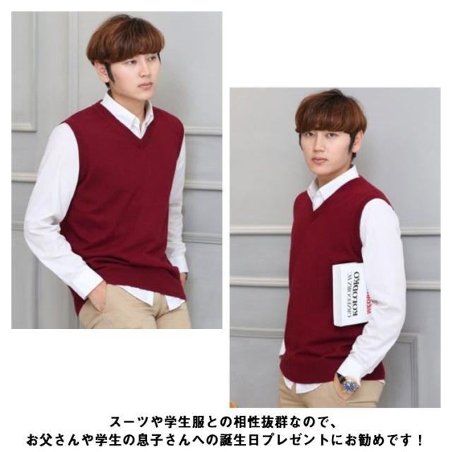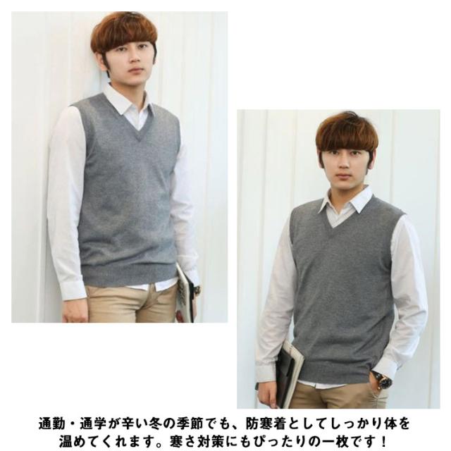 送料無料 ベスト ジレ ニット Vネック メンズ ニットカーディガン ノースリーブ トップス 秋 冬 オールシーズン 制服 スクール セーター スクールニット ゴルフ 大きいサイズ ビジネス 無地 シンプル セーター カジュアル