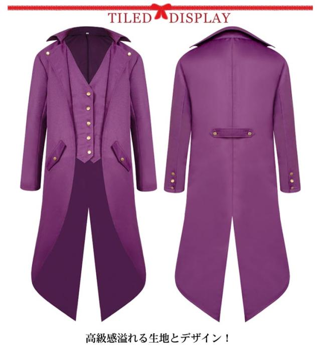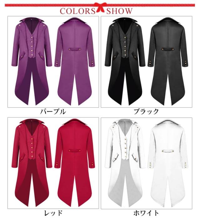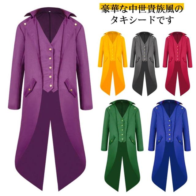 タキシード 中世貴族衣装 ジャケット 舞台 ヨーロッパ中世 貴族 衣装 宮廷服 コート 長袖コート コスチューム 男性 メンズ 男の子 大人 キッズ ハロウィーンコート 上着 仮面舞会 無地 全7色