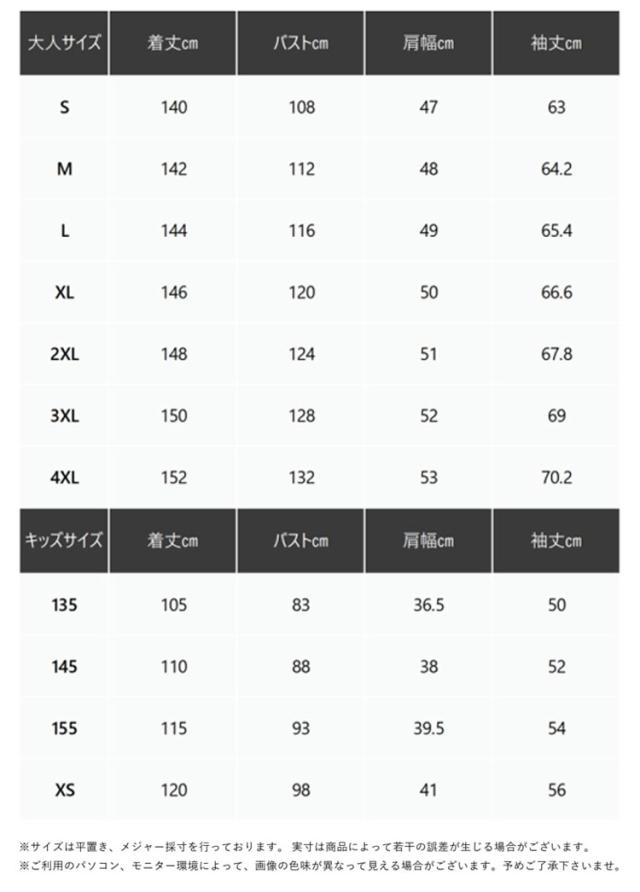 | サイズ | XS S M L XL 2XL 3XL 4XL 135 145 155 |