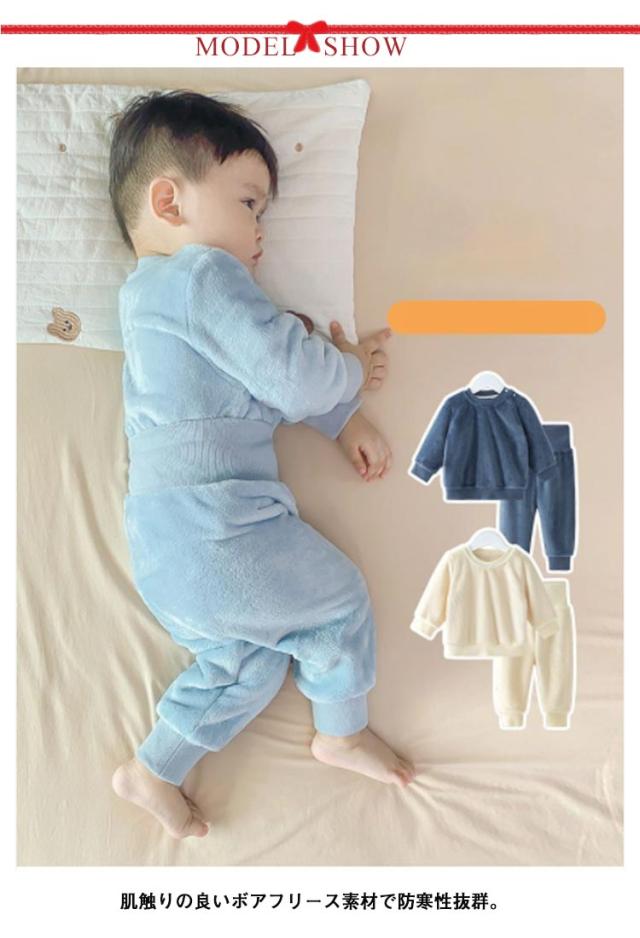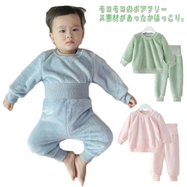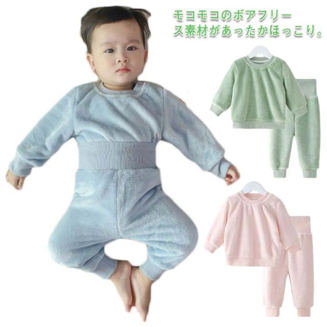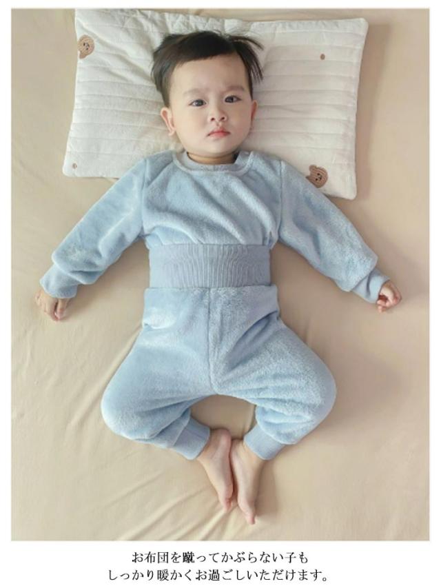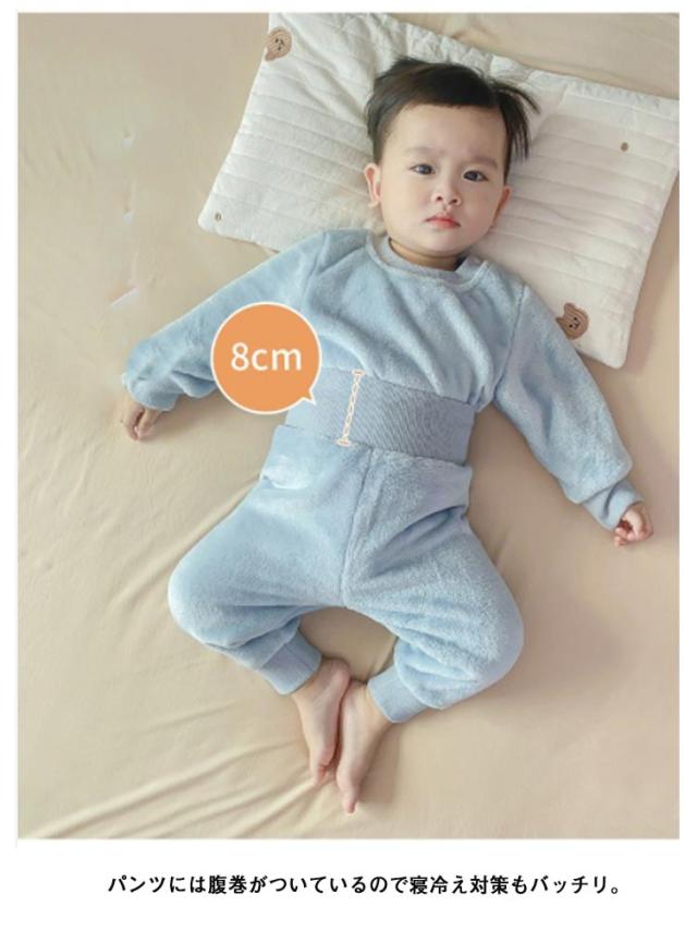 ベビー パジャマ 腹巻き 上下セット ボアフリース プルオーバー 長ズボン もこもこ ふわふわ 部屋着 ルームウェア 厚手 防寒 保温 秋冬 暖か 赤ちゃん 女の子 男の子 あたっか 70 80 90 100 110 送料無料 子ども服 寝冷え防止