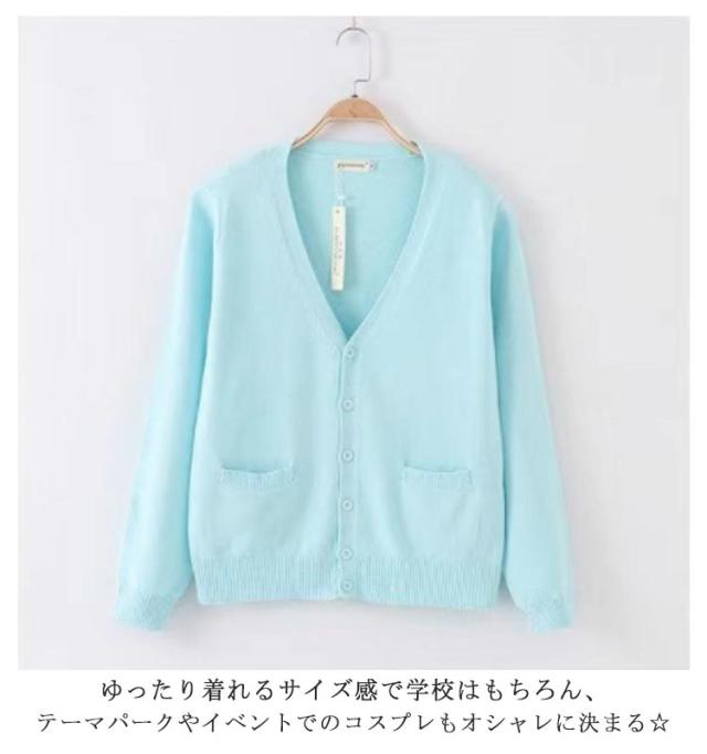 送料無料 選べる18色!スクール カーディガン 女子高生 制服 カーディガン セーター ニット 無地 ゆったり Vネック 高校生 中学生 レディース スクールセーター 学生 イベント コスプレ 定番 jk ナース 医療 看護 介護 事務 会社 オフィス 制服 普通丈