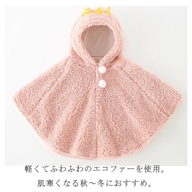 | 長く使えて、シンプルでとてもかわいいアニマル柄の子供ポンチョ。 軽くてふわふわのエコファーを使用。肌寒くなる秋〜冬におすすめ。 肩にパッと羽織らせるだけなので、 袖を通すことなく着せられます。スナップボタンを留めると袖になりますので使い分けができます。 肩幅や腕の長さ等気にせず羽織り物なので長く使えます。 お昼寝の時にサッと掛けたりお子様が小さい時は、クルっとおくるみのように包むこともできます。 | |