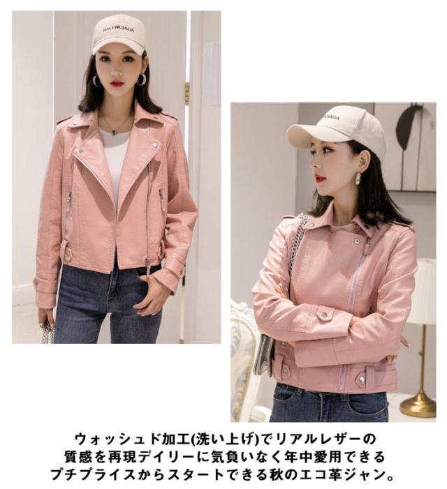 | 春や秋冬に活躍するPUレザーのライダースジャケット。 厚手な中綿タイプもあるので防寒性に大変優れています。 カジュアルコーデはもちろん、フェミニン系スタイルにもピッタリ。 ウォッシュド加工(洗い上げ)でリアルレザーの質感を再現デイリーに気負いなく年中愛用できるプチプライスからスタートできる秋のエコ革ジャン。 どんなコーデにも相性抜群なので一人一枚は持っておきたい必需品。 | |