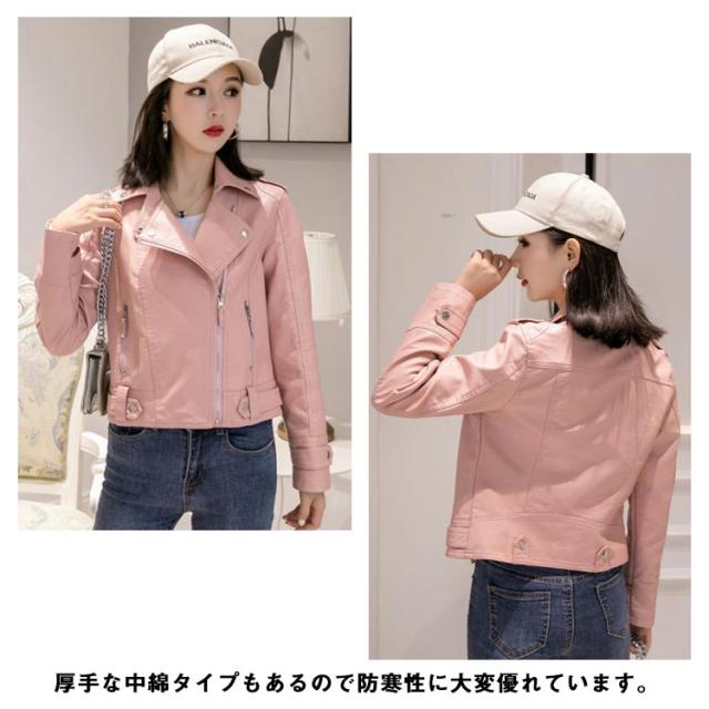 レザージャケット 防寒 中綿ジャケット アウター レディース ショート丈 秋コーデ ライダースジャケット 韓国ファッション 大きいサイズ 革ジャン PUレザー ブルゾン コート ジップアップ おしゃれ 送料無料