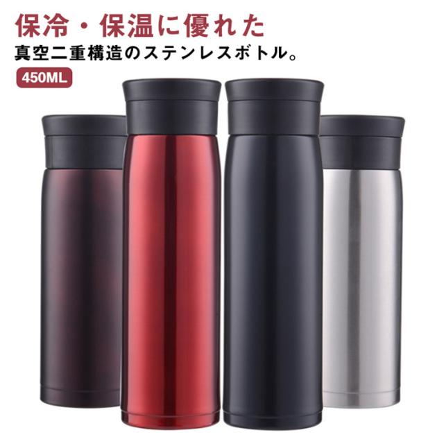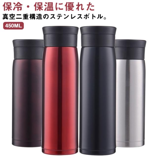水筒 ステンレス ボトル おしゃれ 大人 直飲み 真空二重構造 450ml 保温 保冷 マグボトル ステンレス製 直飲み 水分補給 アウトドア 通学通勤 遠足 スポーツ 登山 持ち運び 軽量 クリスマス ギフト プレゼント レジャー