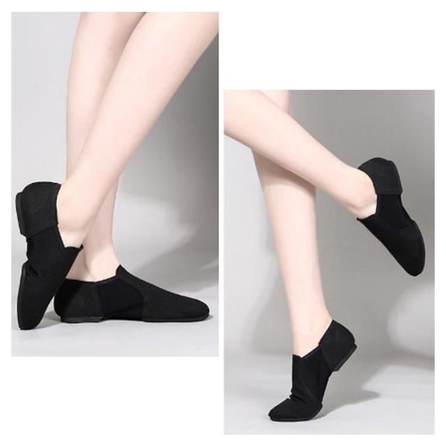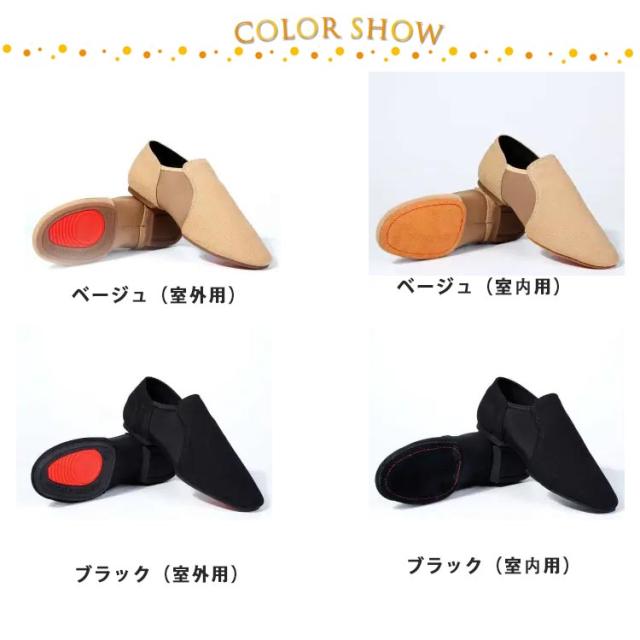 | サイドゴアタイプなので着脱も簡単。ストレッチ性良いジャズシューズ。 (室内用ラバー底/室内用牛革底)二種類の靴底、快適、軽量ですので、運動しても、日常の着用にもお使いいただけます。 軽量で通気性もよく型崩れしにくいジャズシューズです。 前後に分かれたスプリットソールでターンも楽々! ギャザーになったつま先は、足指に床の感覚がしっかりと伝わります。かかと回りが深く、ホールド感もバツグンです。 ジャズダンスはもちろん、チアダンス、バトン、エレクトーン用のシューズとしても人気! | |