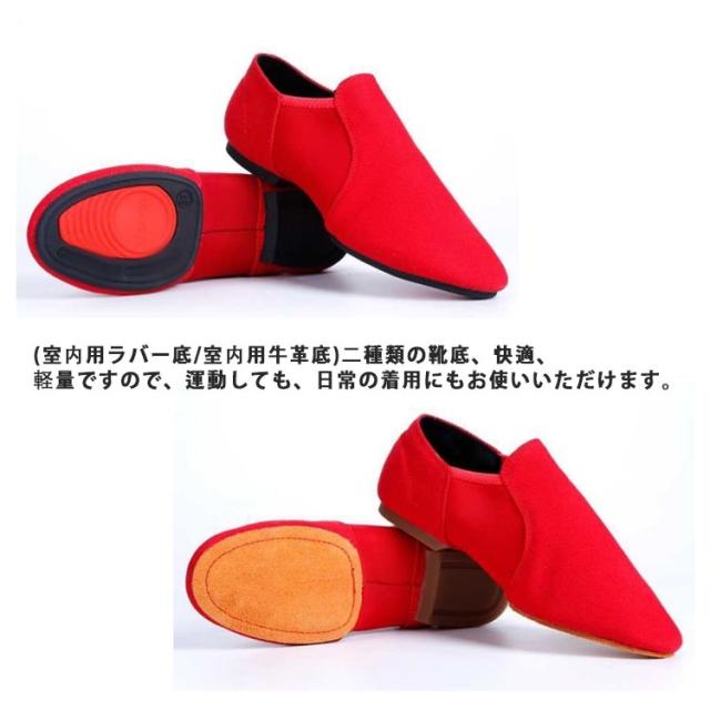 ジャズシューズ ジャズダンス シューズ 子供 大人 ジャズ シューズ ダンスシューズ ズック キャンバス 通気性 サイドゴア ゴム底 チアダンス チアリーディング レッド 黒 ベージュ モダンバレエ エレクトーン ヨガ バトンシューズ ローカット 22-26cm