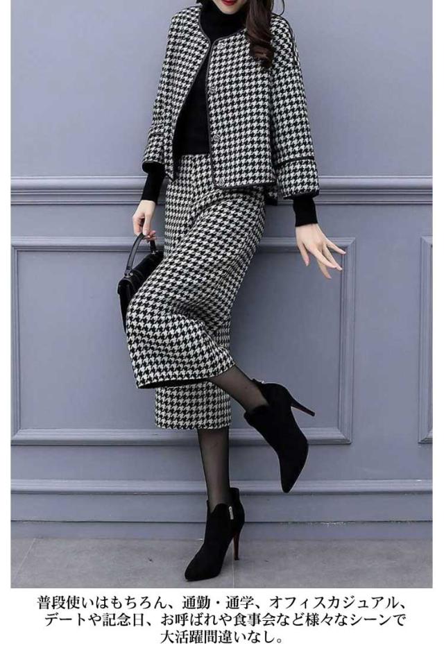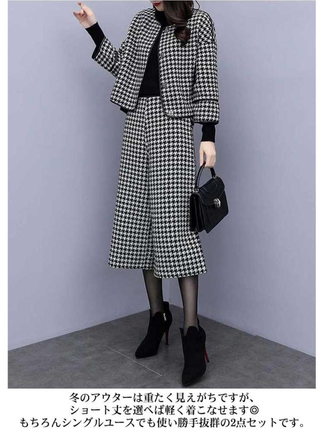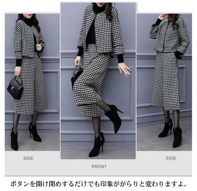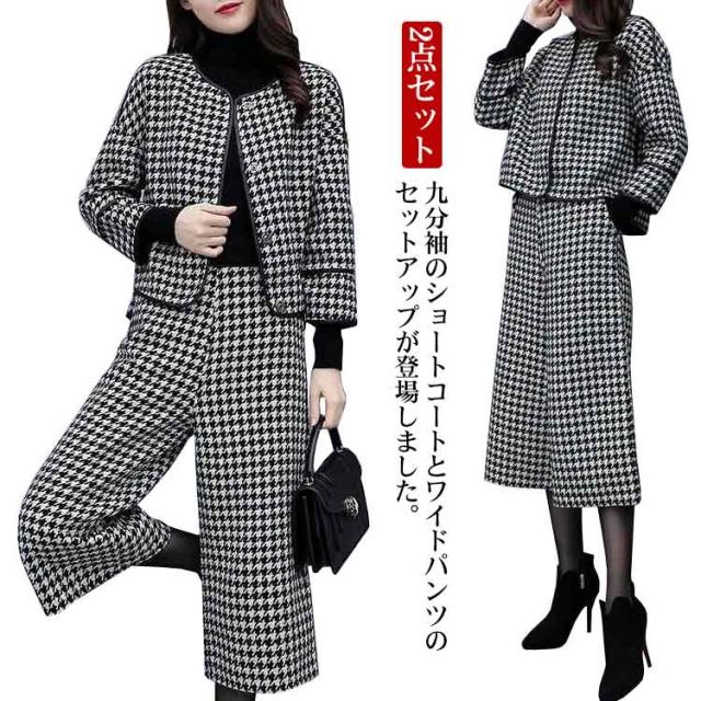 千鳥柄 スーツ セットアップレディース 秋冬 フォーマル ジャケット&パンツ 2点セット ママスーツ 大きいサイズ パンツスーツ ビジネス 出勤 オフィス 謝恩会 結婚式 七五三 きれいめ 入学式 卒業式