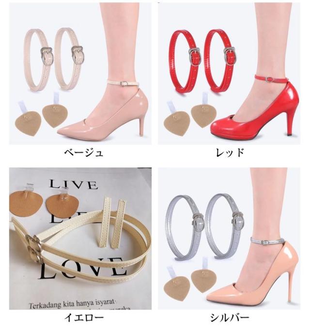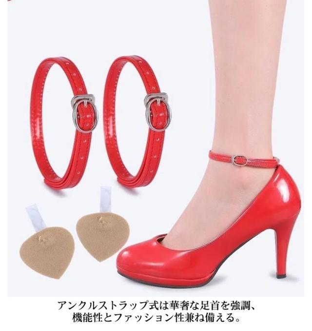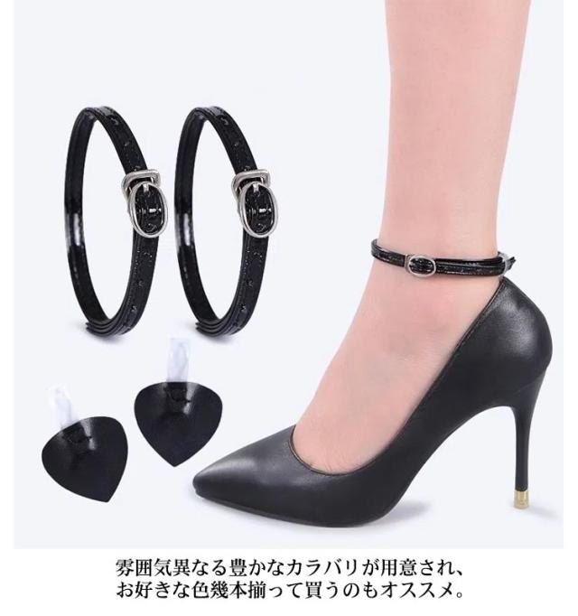 2ペアセット アンクルタイプ シューズストラップ バックル付き レディース 送料無料 シューズベルト パンプス脱げ防止 美足 シューズバンド パンプスストラップ 長さ調節可 アンクルストラップ