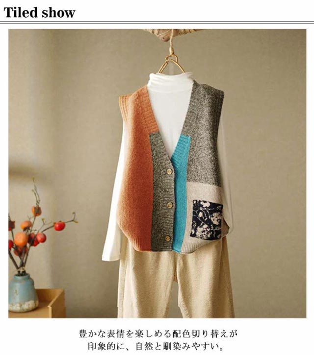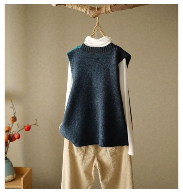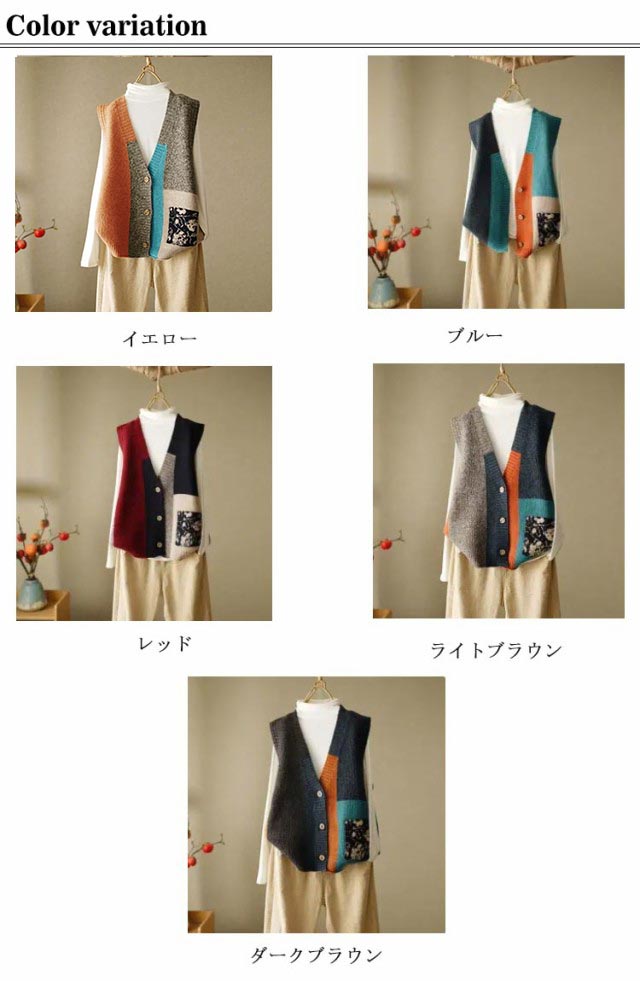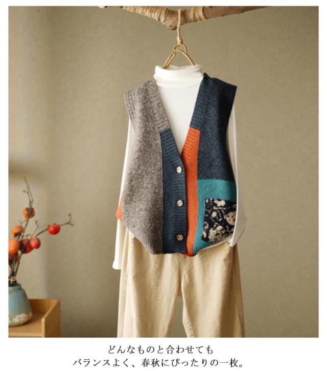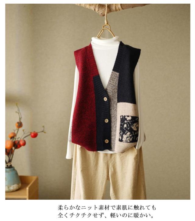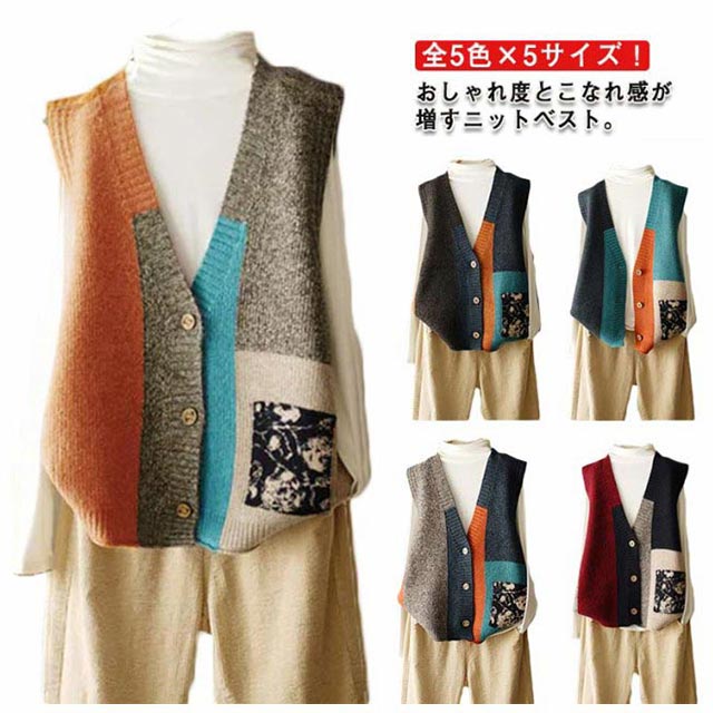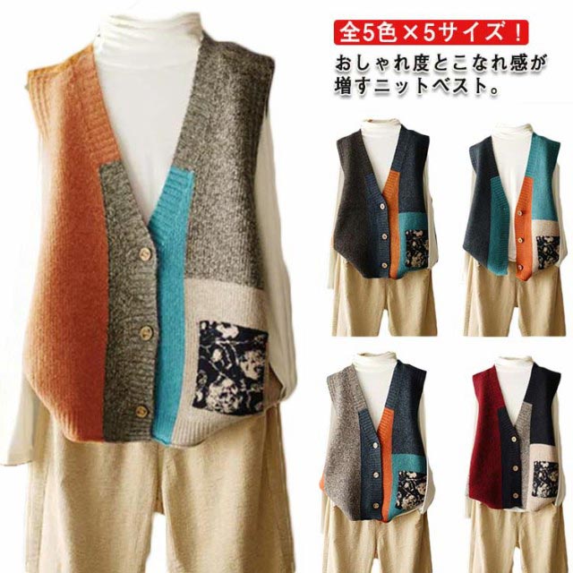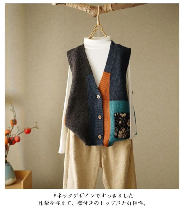 ニットベスト 配色 ベスト レディース ニット ベスト vネック 柄 ノースリーブ 冬 春 秋 前開き ジレ おしゃれ ジレベスト 大きいサイズ トップス 着回し カジュアル ナチュラル 体型カバー レイヤード 通勤 オフィス シンプル 重ね着 30代 40代 50代 送料無料