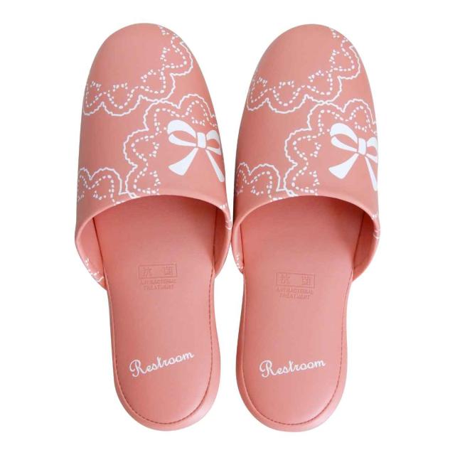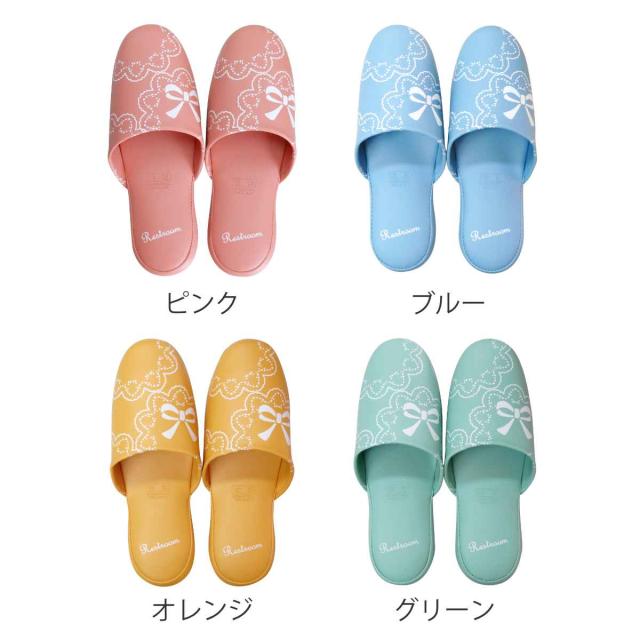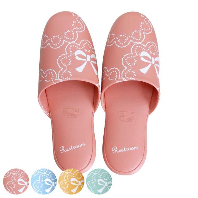 サッと拭いてお手入れできるリボン柄スリッパ