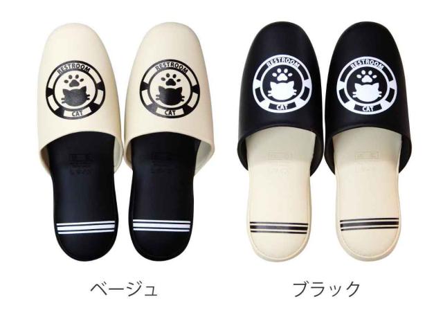 トイレスリッパ 拭けるスリッパ キャット 28cm ( トイレ用スリッパ トイレ スリッパ 拭ける 男女 トイレ用品 トイレタリー Toilet 撥水 抗菌 ベージュ ブラック L )