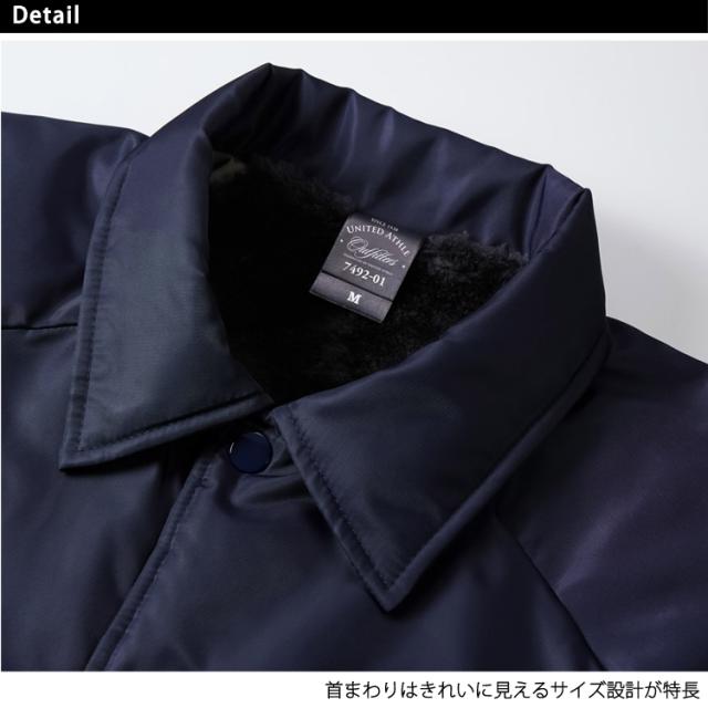 防寒ジャケット ユナイテッドアスレ 7492-01 コーチ ジャケット ボア裏地付 ジャケット ブルゾン 防寒 撥水 ユニセックス アウター United Athle