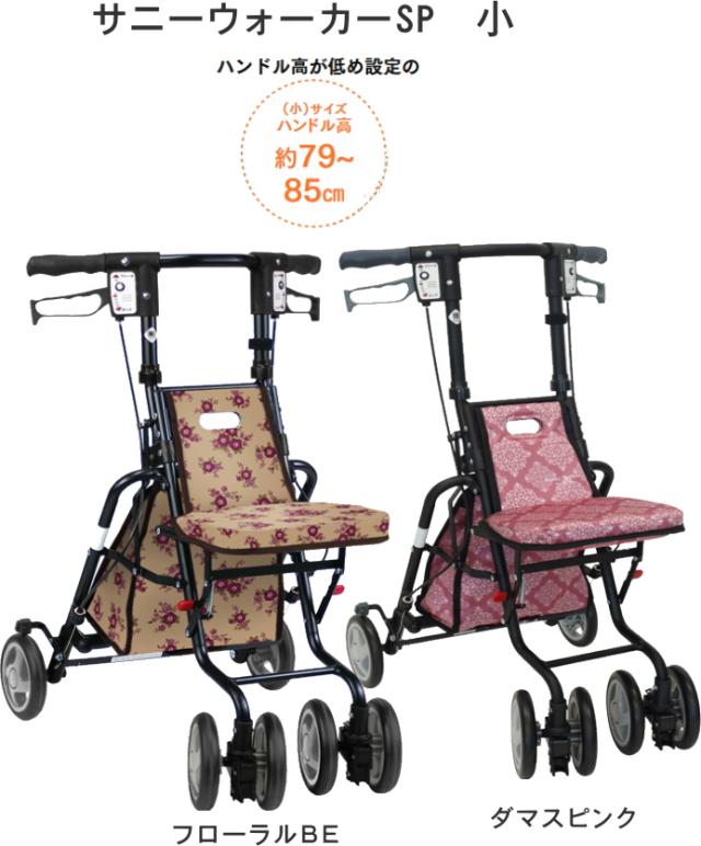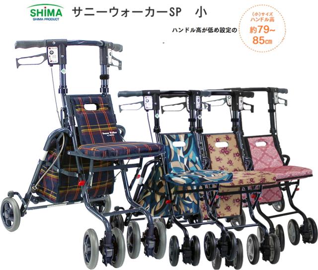島製作所 サニーウォーカーSP 小 おしゃれなシルバーカー座面椅子付き 歩きやすさを追求したデザイン、脚の運びも楽々 手元2WAYブレーキの連動タイプ。どちらかのブレーキで両後輪の操作可能 介護福祉サービス高齢者デイサービスシニア歩きやすい敬老の日母の日折りたたみ